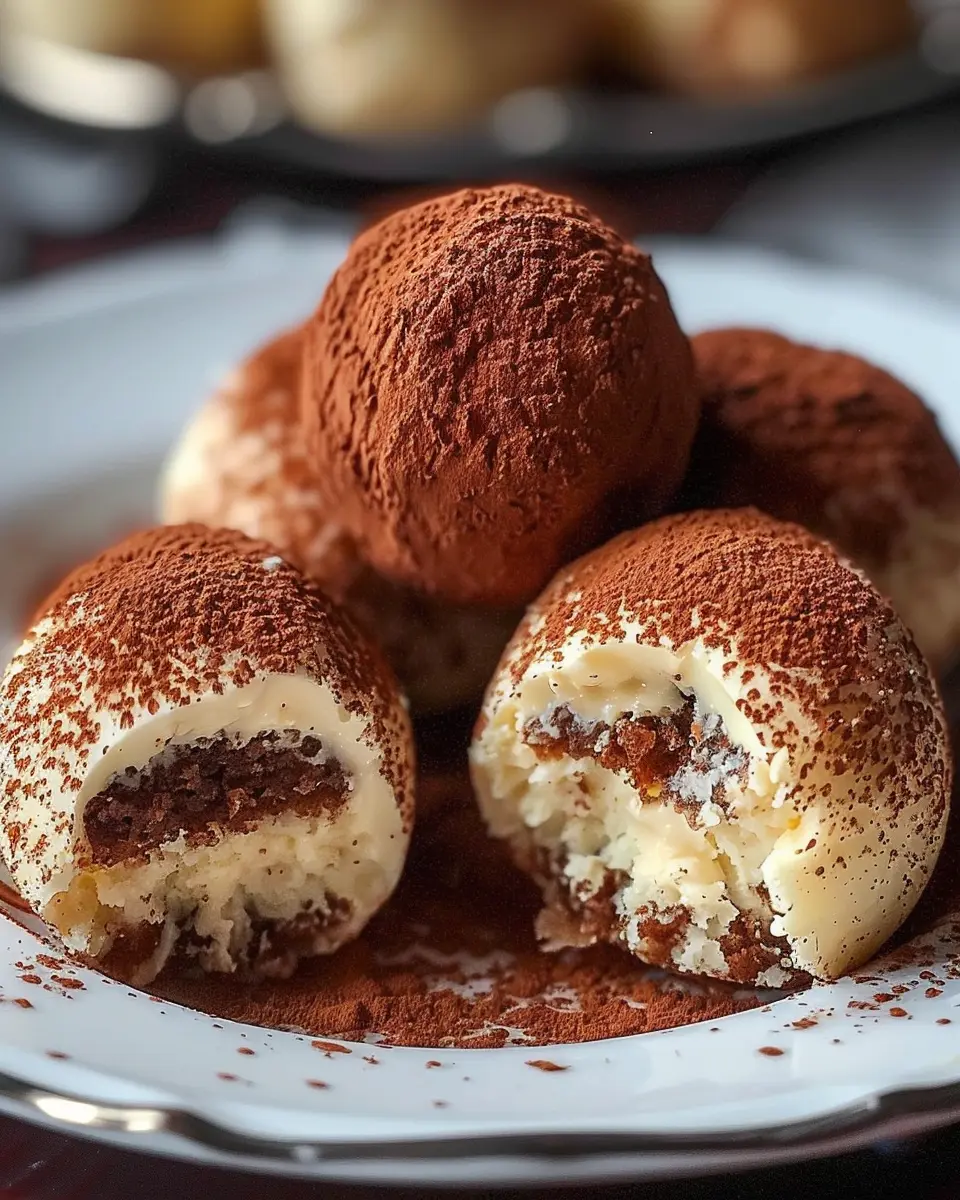 • Dessert Platter: Arrange the tiramisu balls on a beautiful platter, garnished with coffee beans or mint leaves for a pop of color.