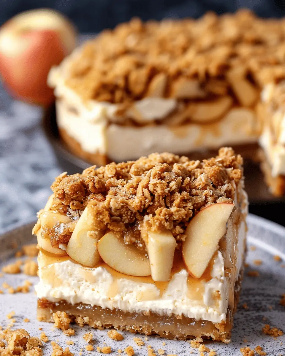 What’s more, this apple crisp cheesecake recipe is perfect for gatherings. Whether you’re hosting a Friendsgiving or just want to impress your coworkers with a delicious treat, this dessert easily steals the spotlight. Serving it with a drizzle of caramel or a dollop of whipped cream elevates the experience even further. It’s a guaranteed crowd-pleaser!