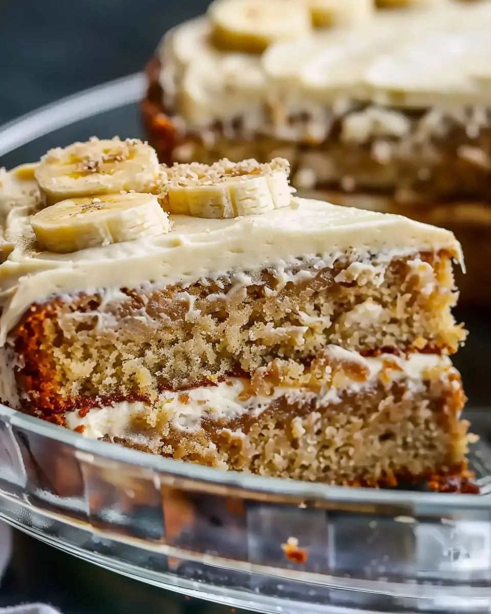 Elevate your presentation by serving slices of Banana Bread Cake with Cream Cheese Frosting on stylish plates. Add a dusting of powdered sugar for an elegant touch, or garnish with fresh banana slices and a sprinkle of chopped nuts. Plating the cake on a rustic wooden board can also add a lovely homey feel. Consider adding a small jar of honey or a scoop of vanilla ice cream on the side for a delightful addition.