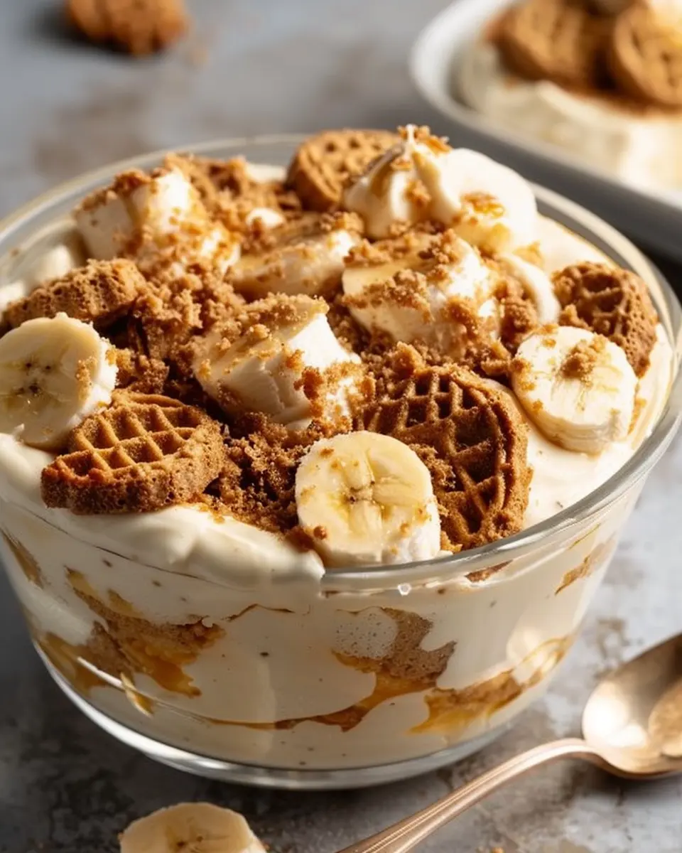 Discover the decadent blend of Biscoff cookies and creamy banana pudding in this indulgent dessert.