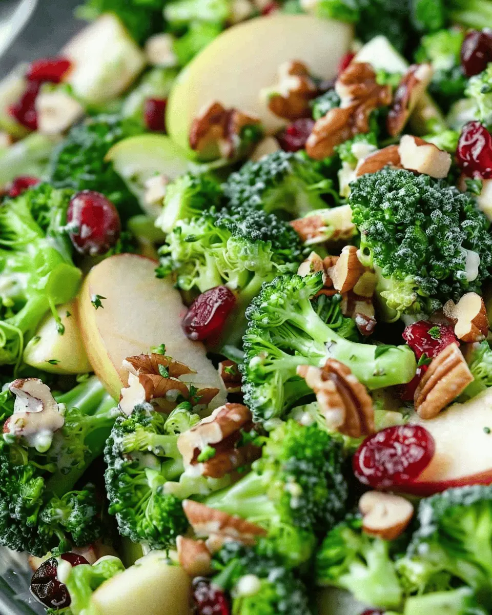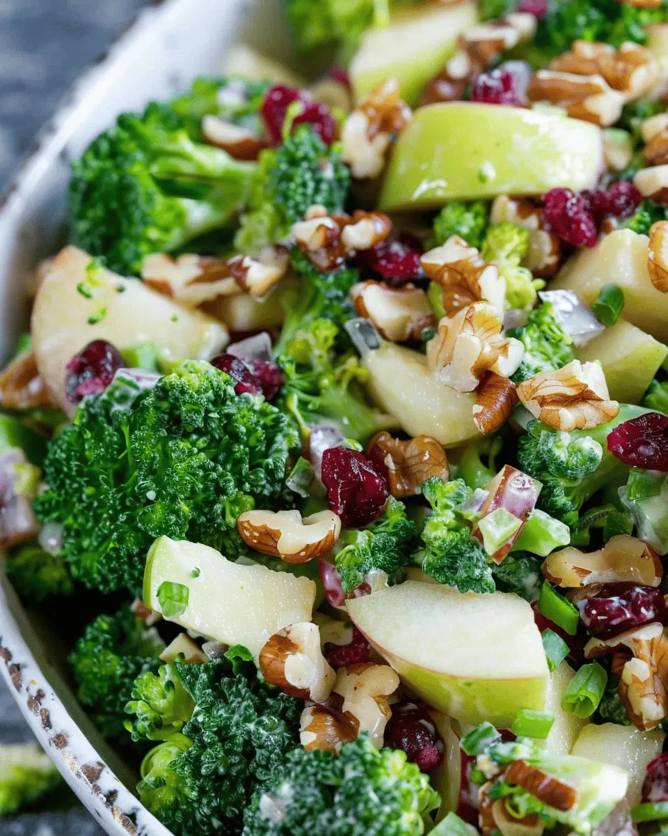 Creating a Broccoli Salad with Apples, Walnuts, and Cranberries is a delightful way to introduce a burst of color and flavor into your meals. This salad not only looks beautiful but also packs in nutrients that are beneficial for your health. Let’s walk through the steps together so you can whip up this wonderful dish with ease.