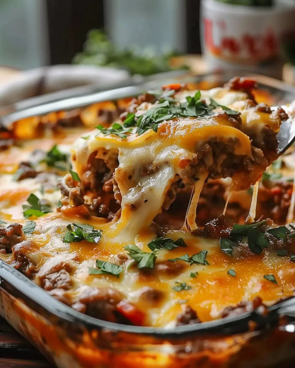 • Lastly, generously sprinkle 1 to 2 cups of shredded cheese on top—cheddar, Monterey Jack, or a blend works beautifully!