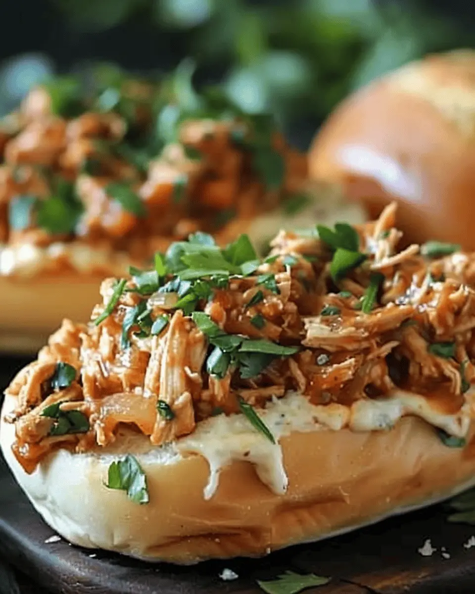 Imagine sinking your teeth into a soft bun filled with juicy chicken, enveloped in a rich Alfredo sauce, and enhanced with delicious spices. Add some freshly chopped parsley or even crispy Turkey Bacon on top for that extra crunch. The delightful contrast of textures will have your friends and family asking for seconds!