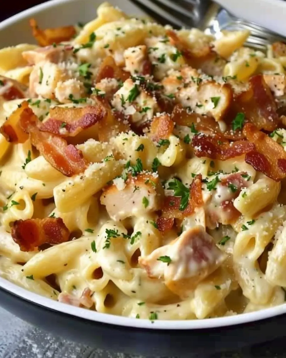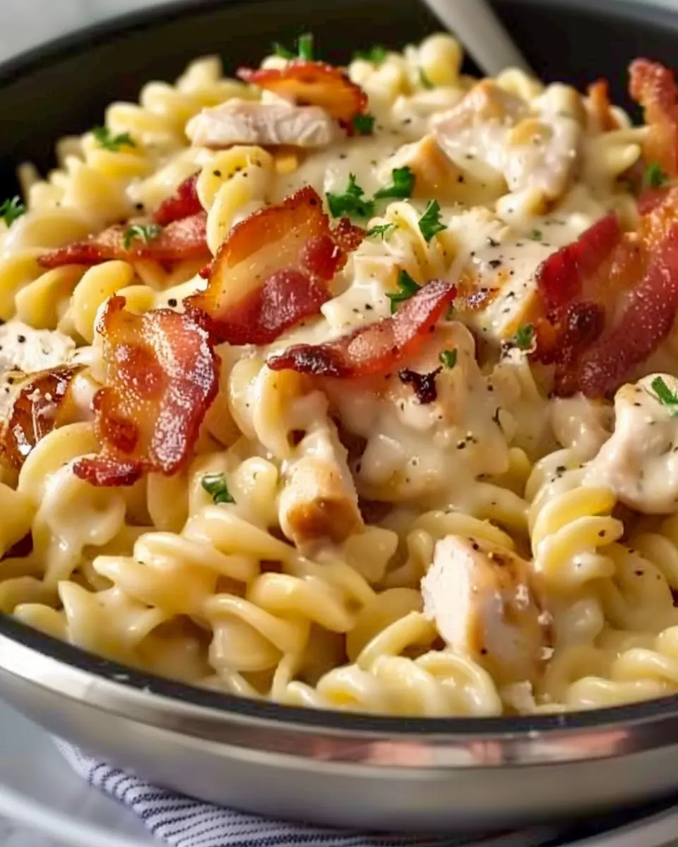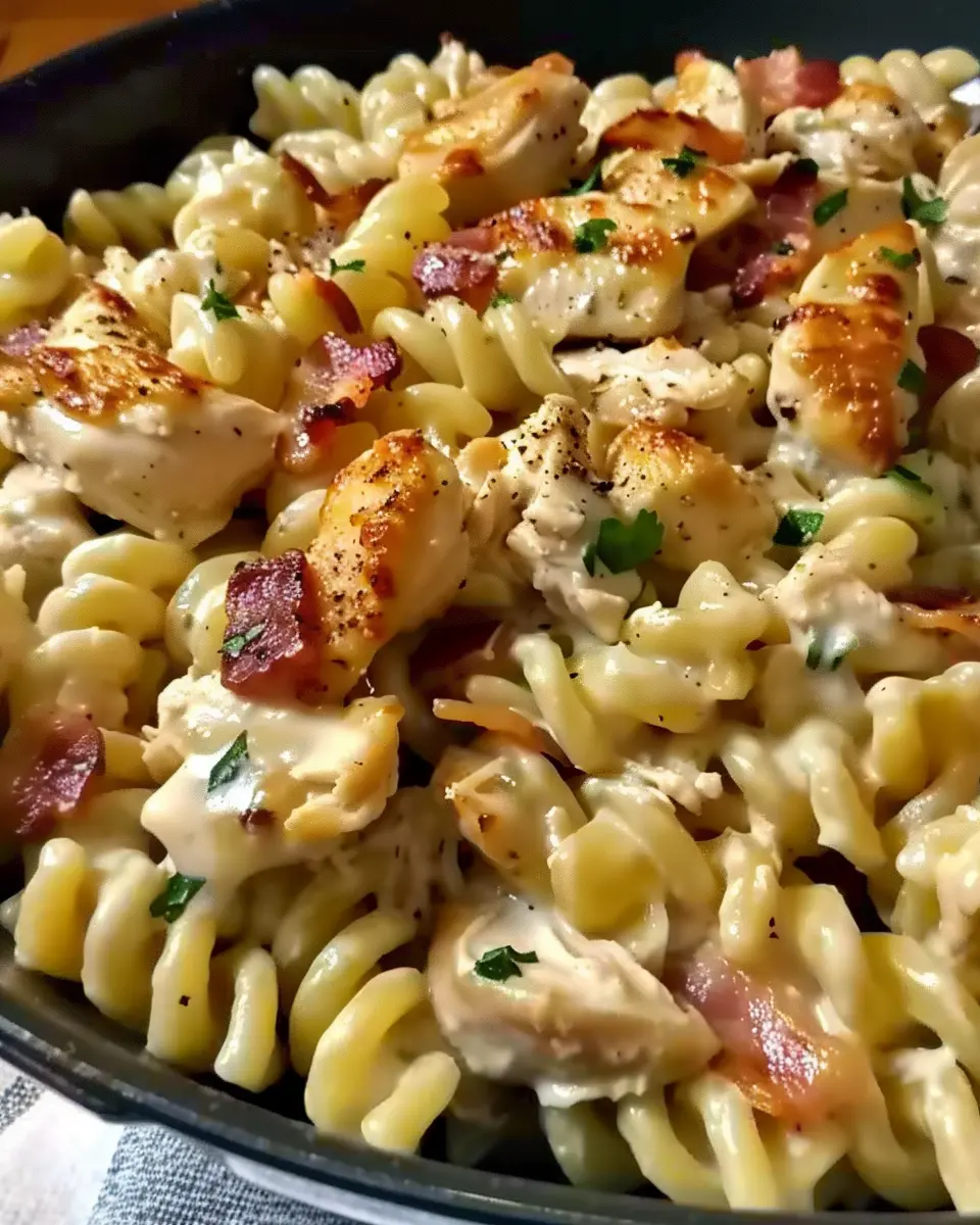 A creamy and savory Chicken Bacon Ranch Pasta dish perfect for a comforting meal.