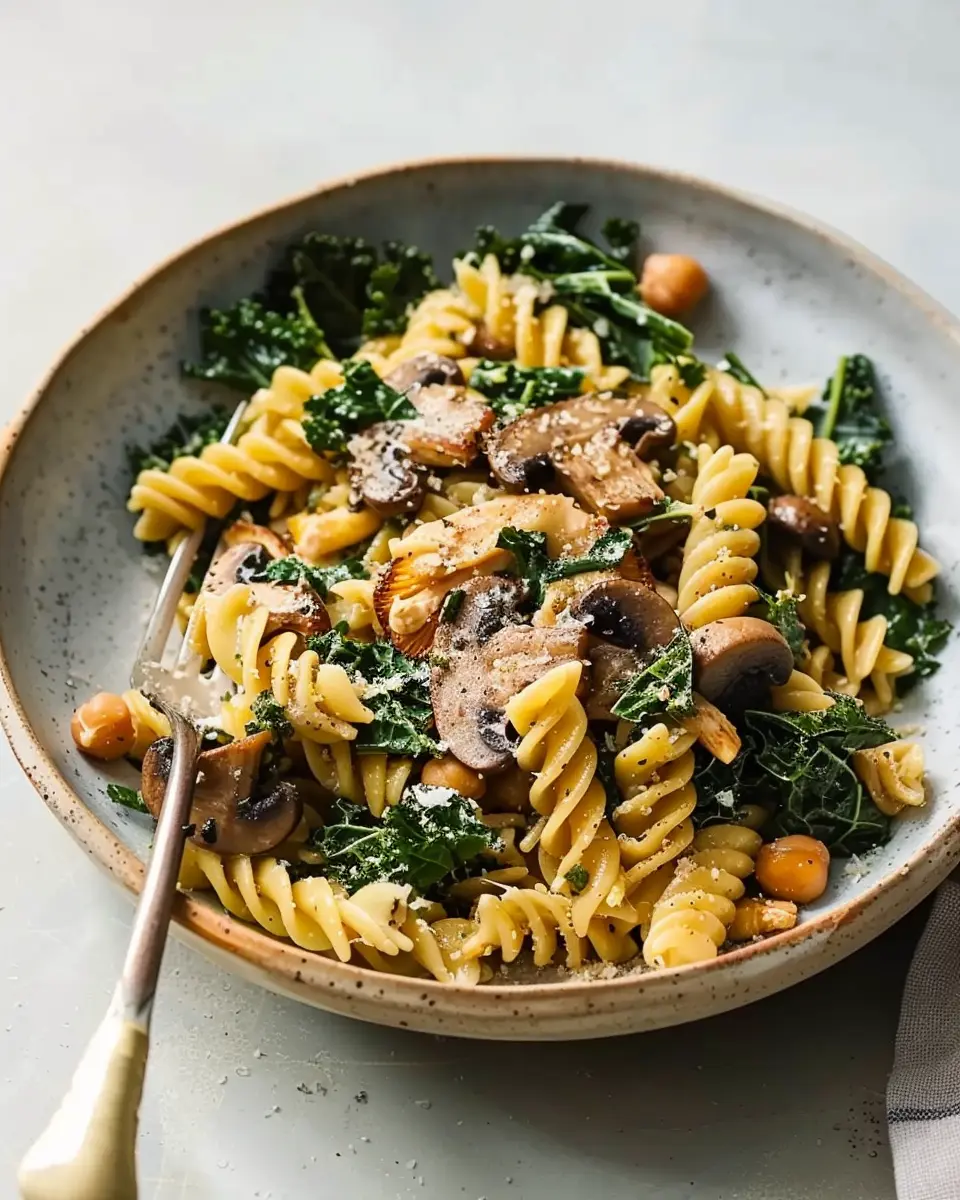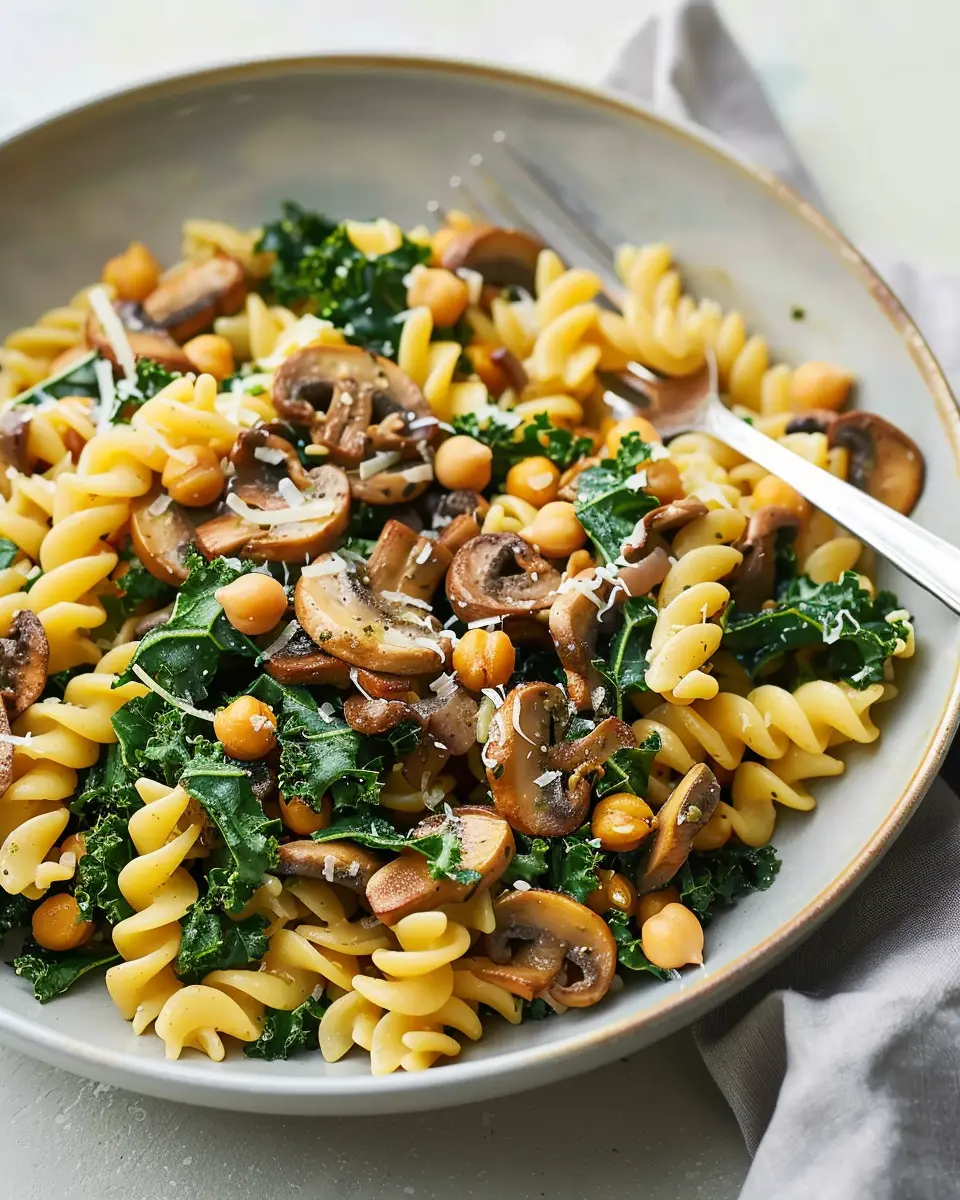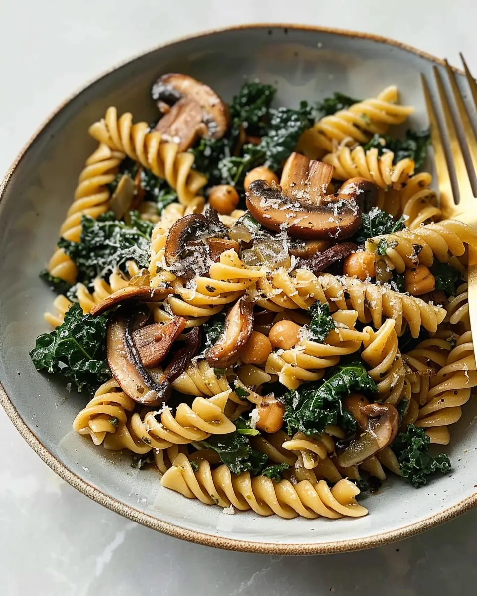 Now that your Chickpea Pasta with Mushrooms & Kale is beautifully combined, it’s time to serve! Consider garnishing with fresh lemon juice or zest for a refreshing touch. A sprinkle of nutritional yeast or vegan parmesan can add a delightful cheesy flavor without any dairy.