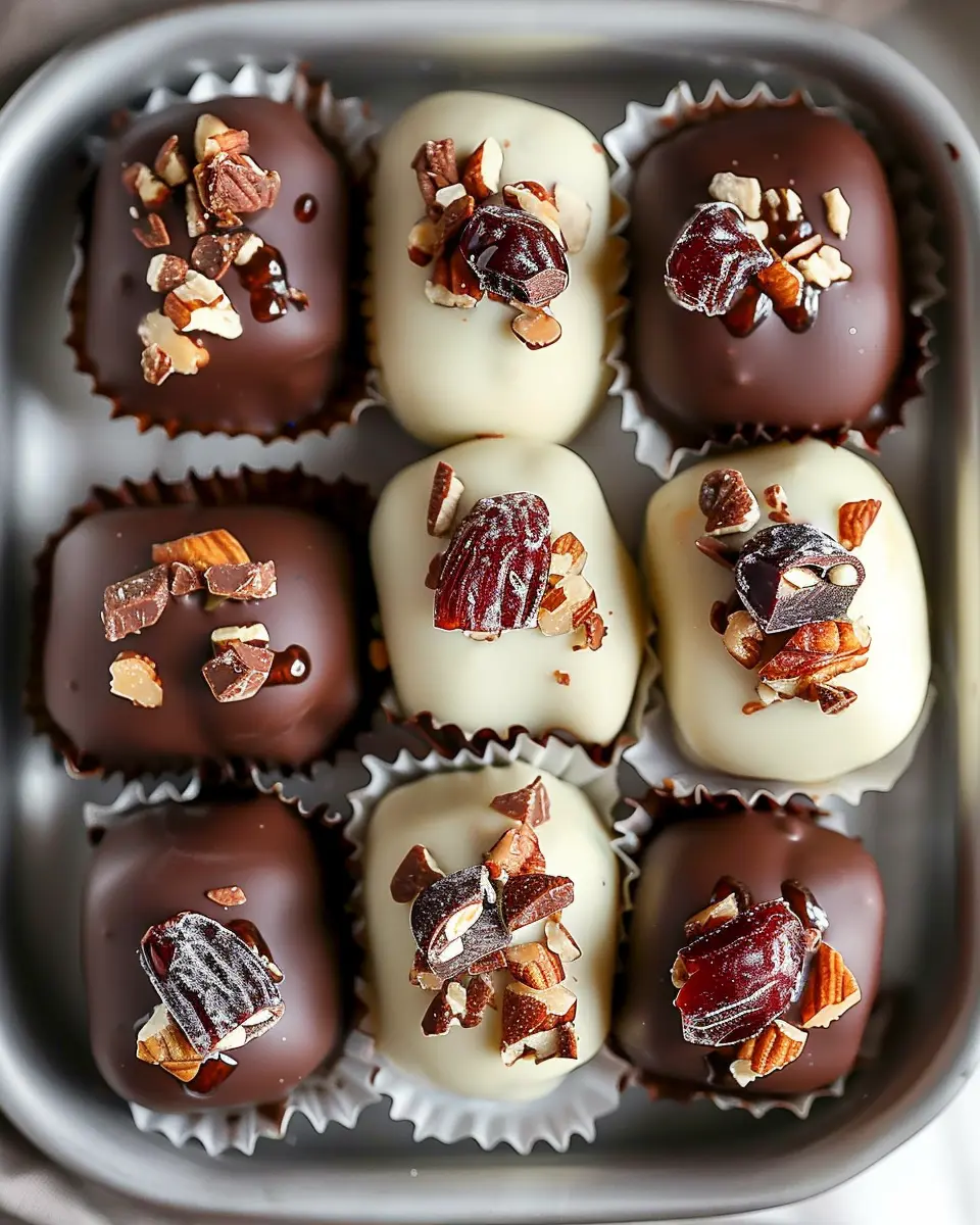 A decadent treat that combines the rich flavors of chocolate with the natural sweetness of stuffed dates.