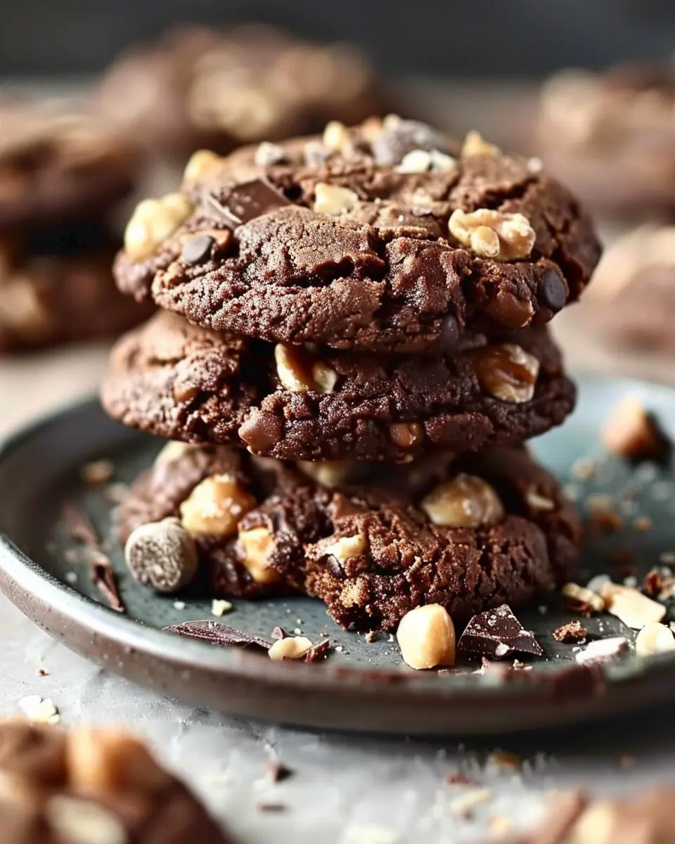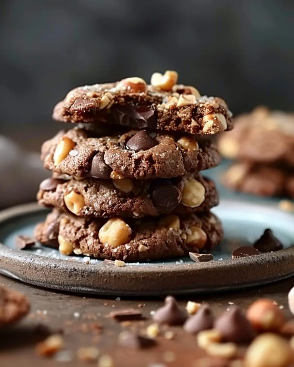 Indulge in the rich flavors of Chocolate Hazelnut Crunch Cookies, perfect for satisfying your sweet tooth.