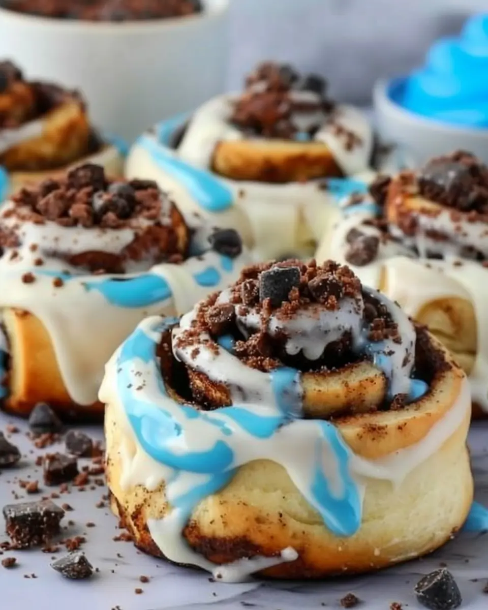PrintCookie Monster cinnamon rolls: Indulgent treat with crushed cookies
