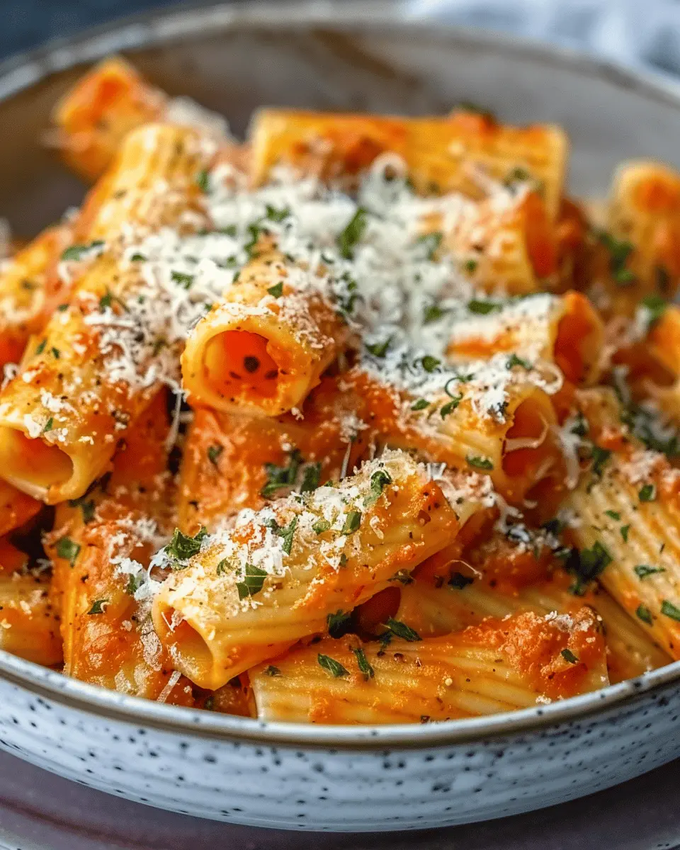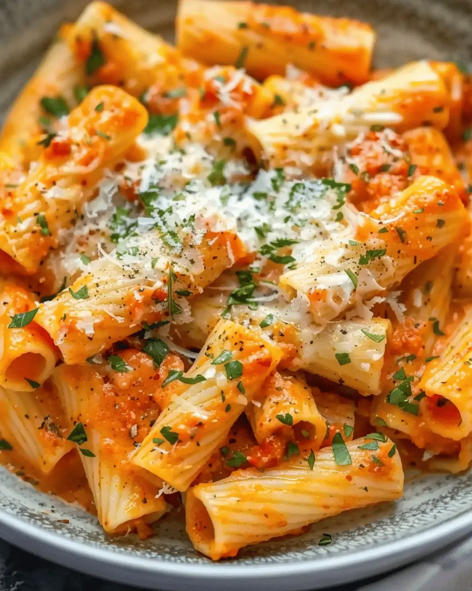 First off, it strikes a great balance between ease and sophistication. With minimal ingredients like rigatoni, tomatoes, garlic, and cream, it’s perfect for weekday dinners where you don’t want to spend hours in the kitchen but still crave something hearty and satisfying. After a long day at work, the last thing you want to do is struggle with complex recipes. This dish is straightforward and can be prepared in under 30 minutes, leaving you ample time to relax or catch up on your favorite series.