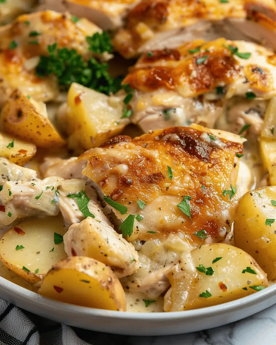In summary, Crock Pot Garlic Parmesan Chicken and Potatoes is a genius solution for busy young professionals yearning for a hearty meal without spending hours in the kitchen. The tender chicken, paired with flavorful potatoes, creates a satisfying dish perfect for weeknight dinners or meal prep.