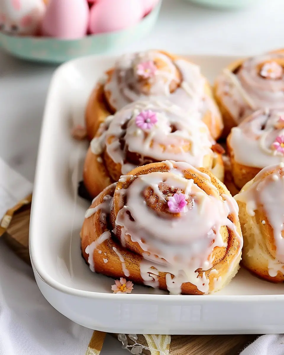 When hosting a brunch, presentation is key, and these delightful Easter Bunny Cinnamon Rolls are a feast for the eyes. Arrange them in a tiered cake stand for an impressive display. You can also sprinkle edible flowers around the rolls for those extra spring vibes.