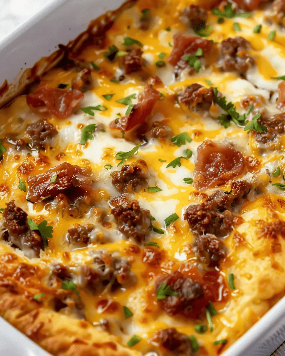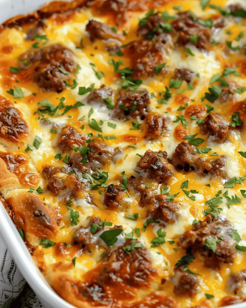 With your crescent roll base in place, it’s time to layer in the sausage (or your veggie alternative if you’ve chosen that route). Spread the cooked sausage evenly over the dough, and if you’re using any additional veggies like diced tomatoes or spinach, throw those in too! This is where you can really customize your dish based on your taste preferences.