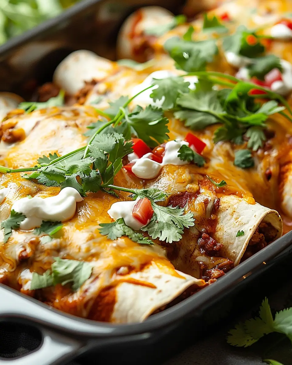 Once your ingredients are ready, the cooking time is approximately 25 minutes. This includes browning the ground beef, assembling the enchiladas, and letting them bake to melty perfection in the oven. It’s that perfect window to pop in your favorite show or catch up with a friend—multitasking at its finest!
