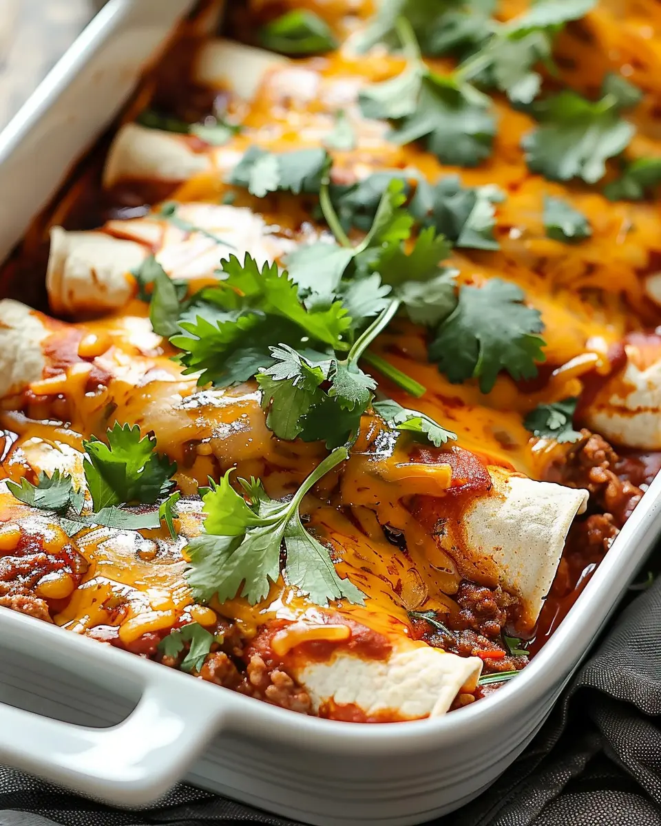 Leftover easy ground beef enchiladas can be a lifesaver for lunch or dinner. To store them, place the enchiladas in an airtight container. They should stay fresh in the refrigerator for about 3-4 days. When you’re ready to enjoy them again, simply reheat in the oven at 350°F until warmed through, or in the microwave for a quicker option.