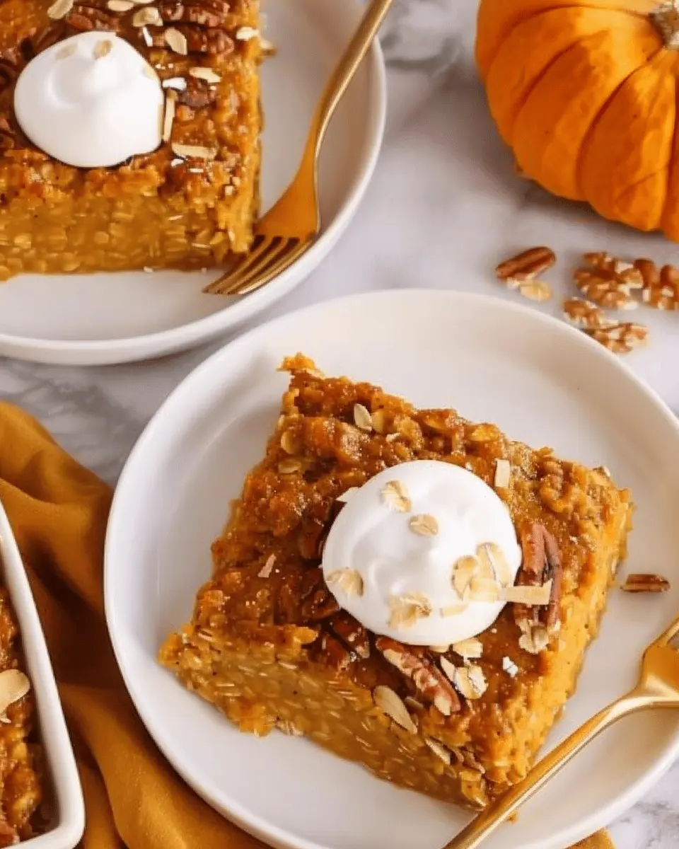 A delightful and healthy twist on traditional oatmeal, this easy pumpkin baked oatmeal is perfect for a warm breakfast.