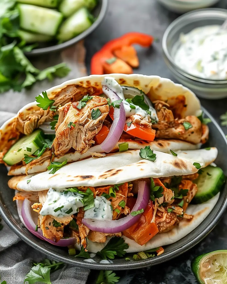 To assemble your delicious shawarma, fill warm pita bread or flatbreads with the shredded chicken, add your homemade yogurt sauce, and top with fresh parsley or your favorite toppings, such as sliced cucumbers, tomatoes, or pickled vegetables.