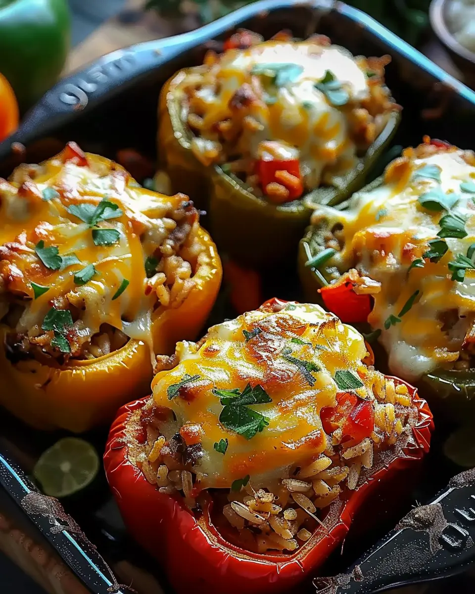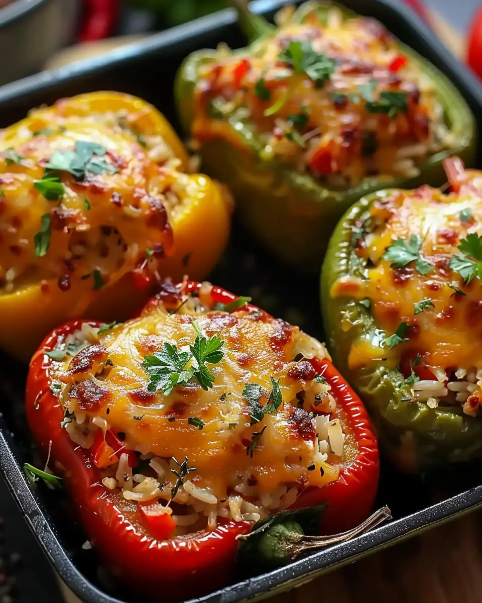 - Stuff the mixture into the bell peppers and place them in a baking dish.