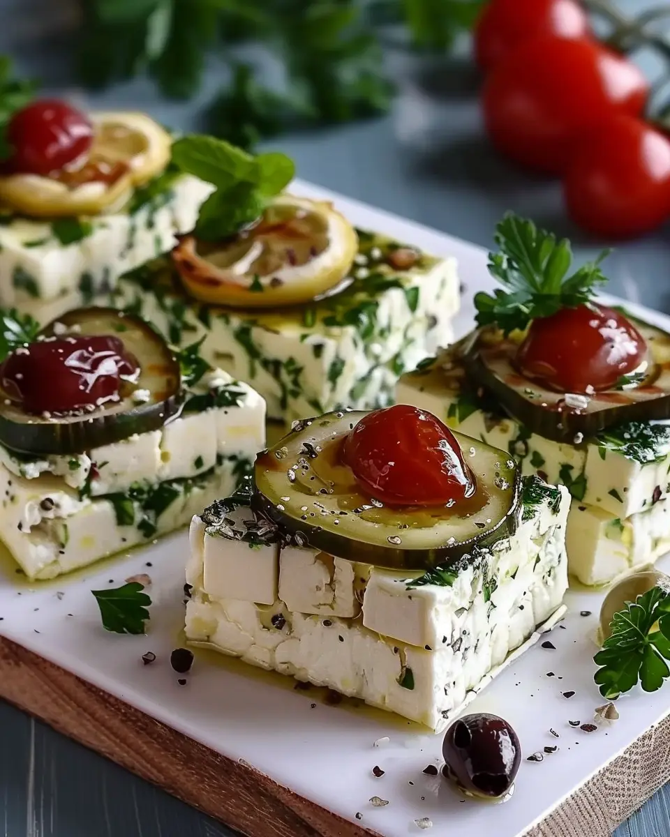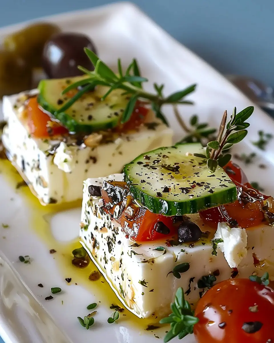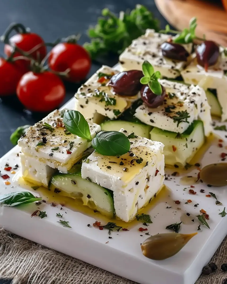 - Visual Appeal: The vibrant colors of green cucumber and white feta make for an eye-catching appetizer that’s sure to impress your guests.