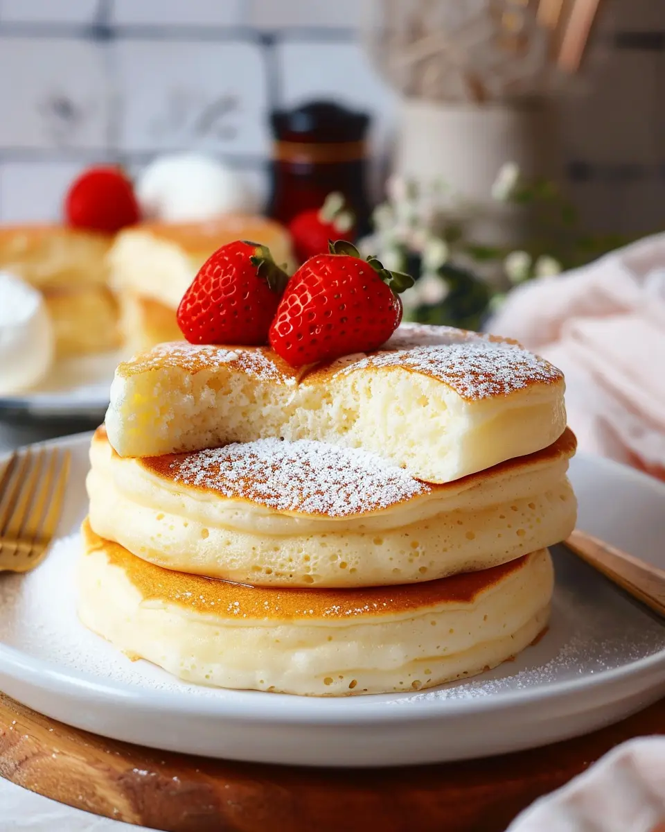 Learn how to make the lightest, fluffiest Japanese soufflé pancakes right at home with this easy-to-follow recipe!