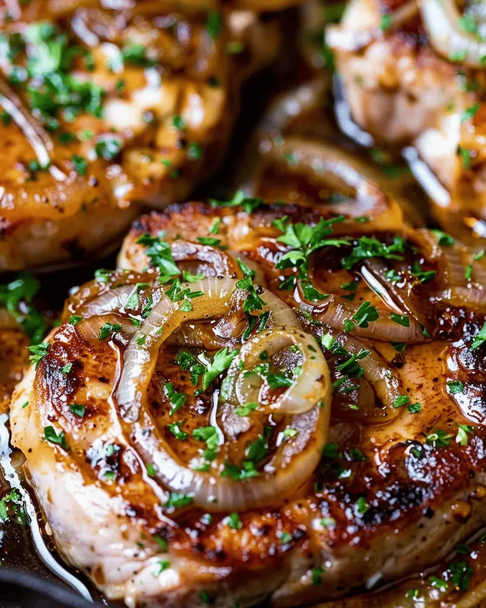 In summary, the French Onion Pork Chops offer an irresistible combination of rich flavors and comforting textures that make for a delightful meal any night of the week. The ease of preparation means you can whip this dish up quickly, making it perfect for a busy lifestyle. Simply sear your beef chops, layer on that savory onion mix, and finish in the oven for a hassle-free culinary experience.