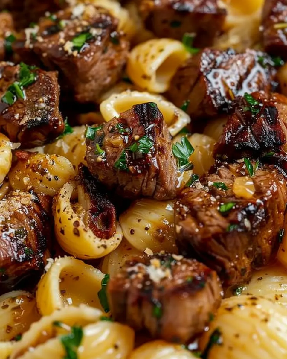 Introduction to Garlic Butter Steak Bites & Shell Pasta
