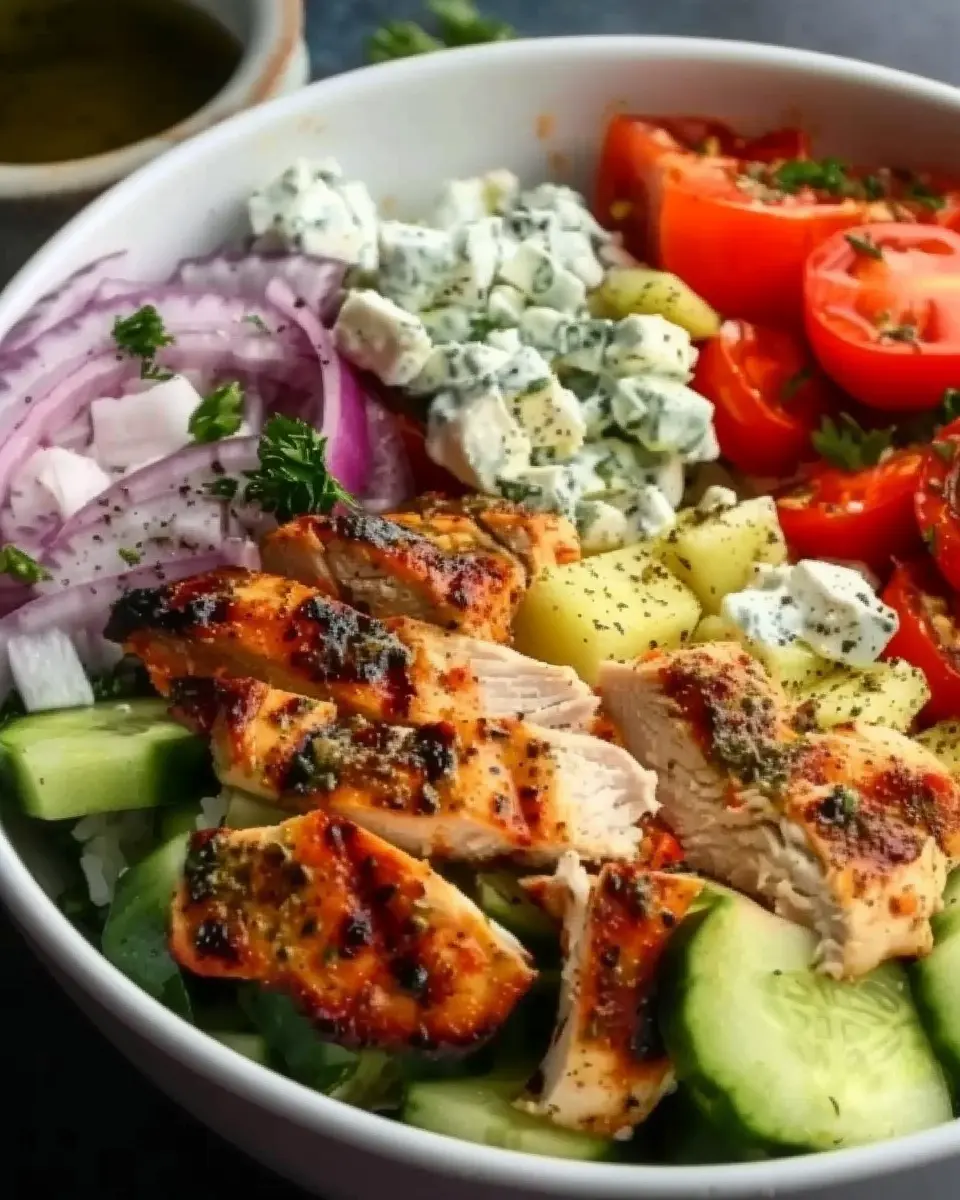 Feel free to mix and match your favorite toppings too. Olives, feta cheese, and fresh herbs like parsley or dill can elevate your Greek chicken bowl to culinary delight—perfect for impressing guests or enjoying a simple yet flavorful dinner at home.