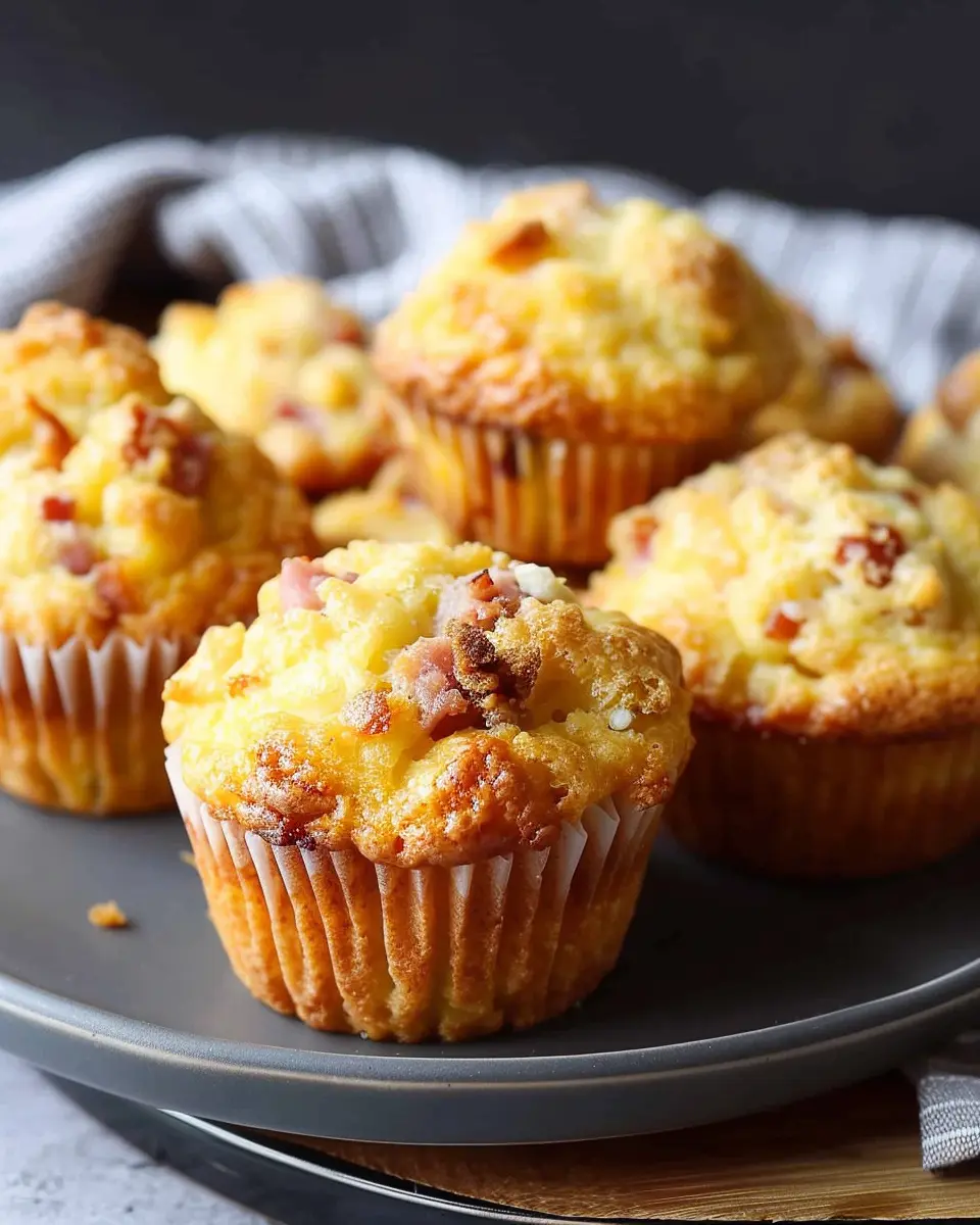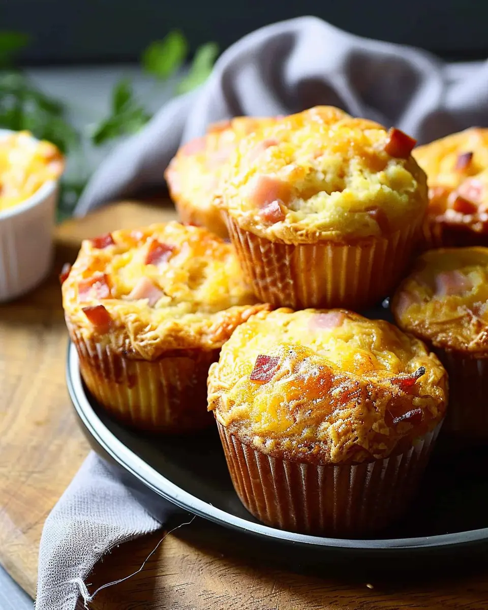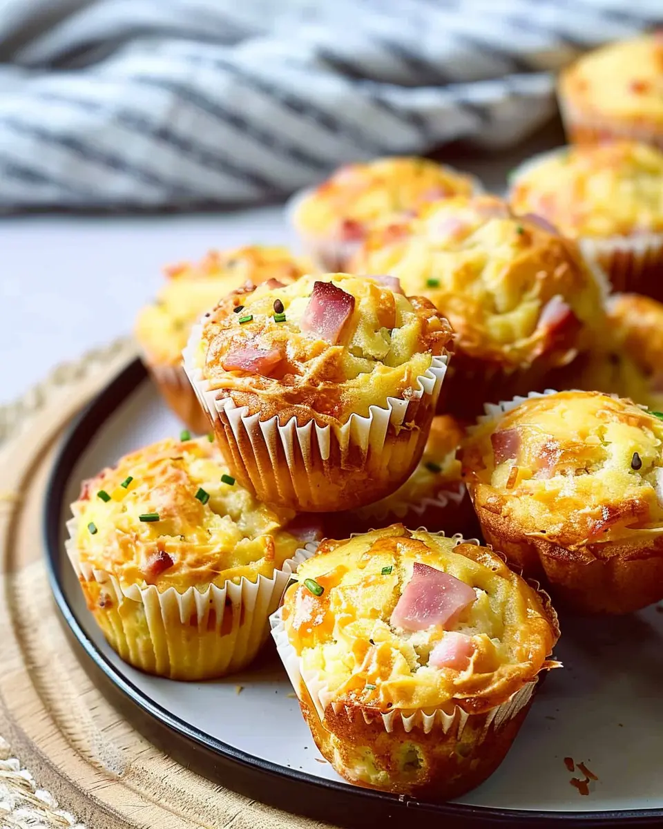 Delicious muffins loaded with ham and cheese, perfect for breakfast or a snack.