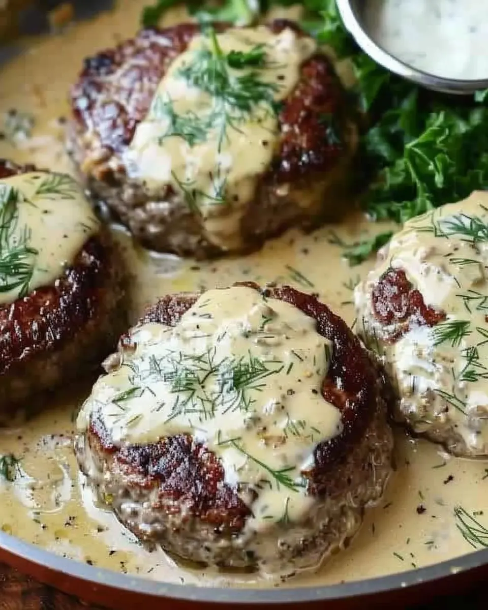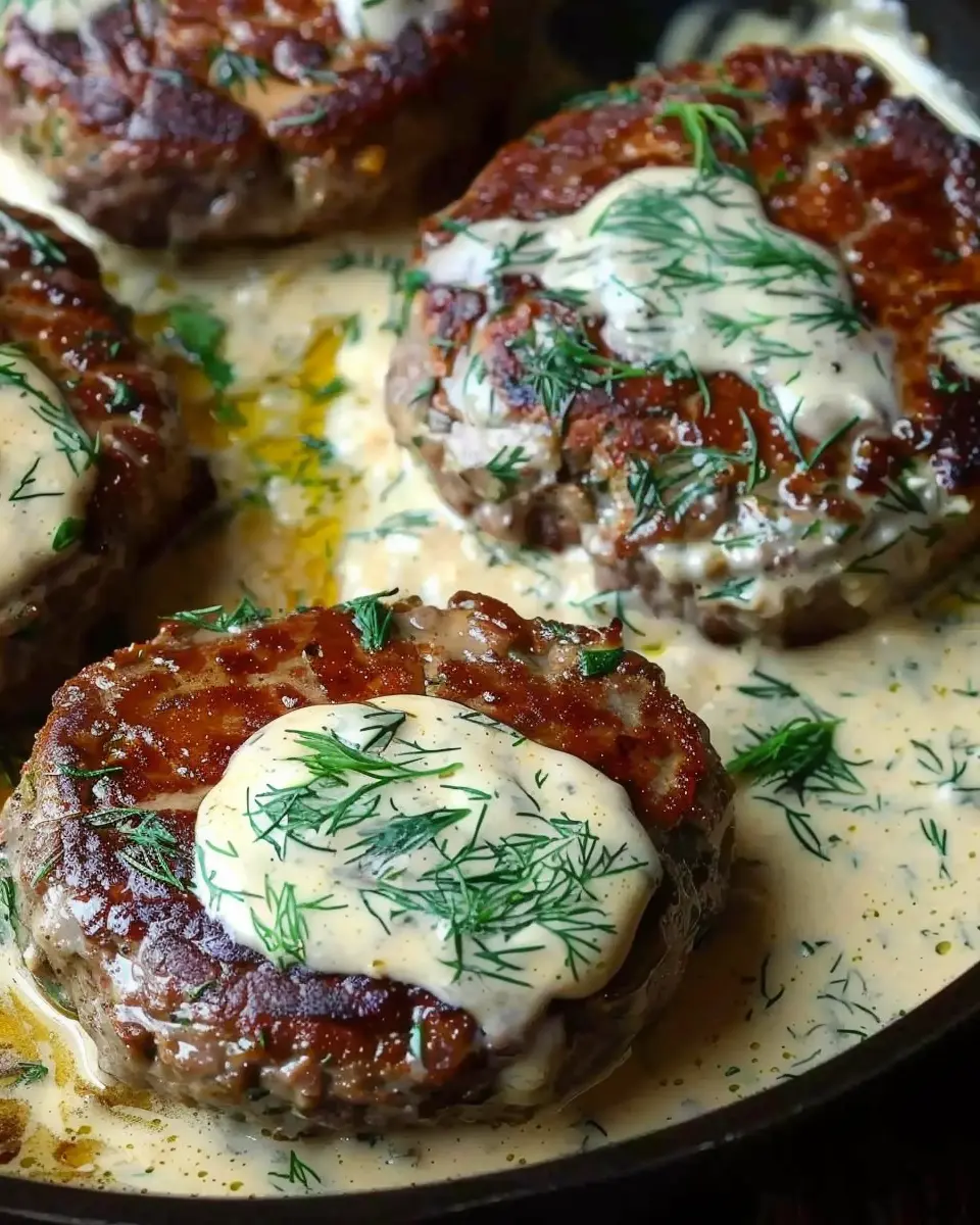 In summary, hamburger steaks in creamy dill sauce is a comforting dish that brings a touch of elegance to any meal while remaining simple to prepare. This recipe combines the rich flavors of beef with a delightful creamy dill sauce, making it a perfect weeknight dinner. Pair it with roasted potatoes or crisp steamed vegetables for a well-rounded meal.