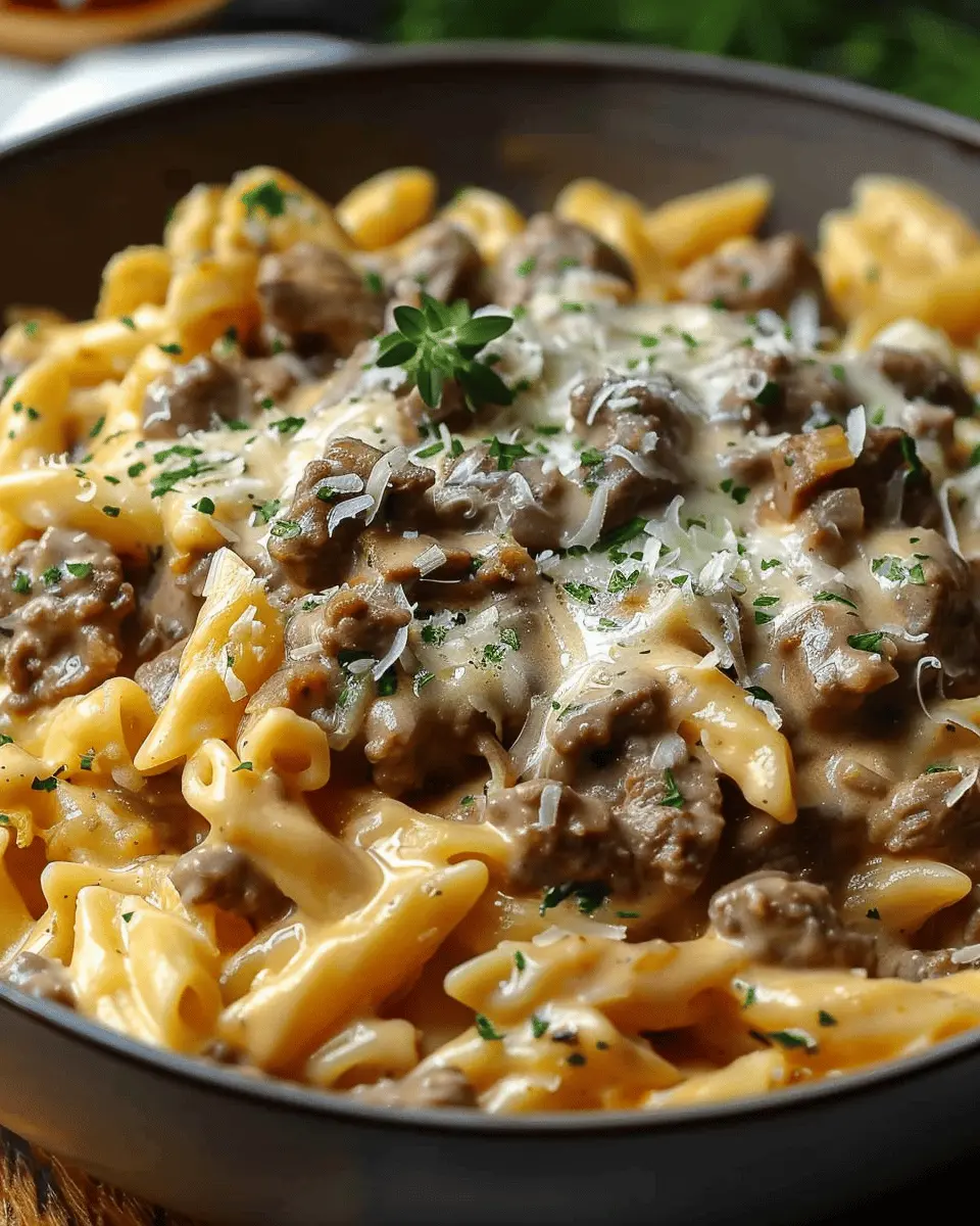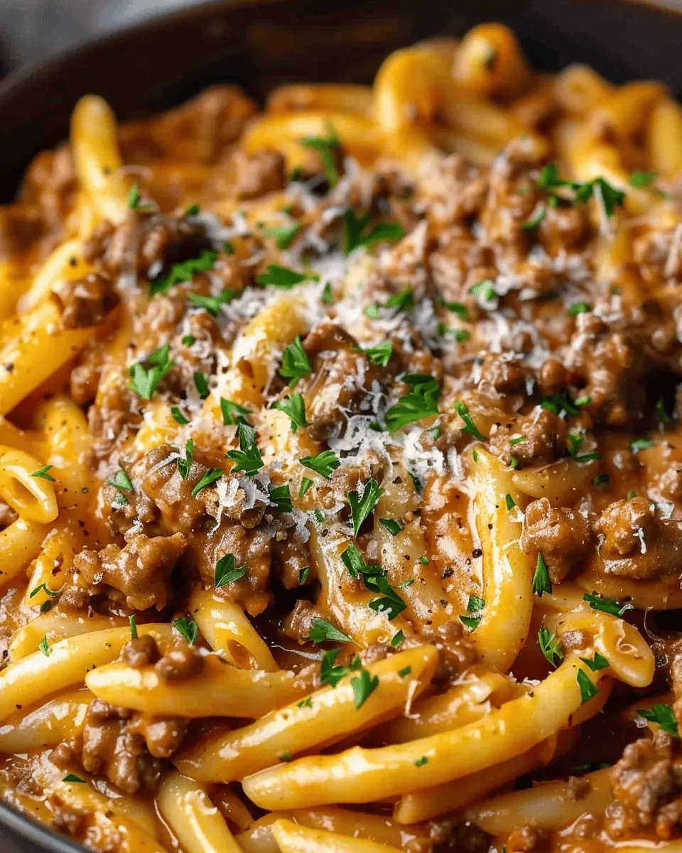 Once you’ve gathered your ingredients, the actual cooking takes roughly 20-25 minutes. This includes browning the beef and simmering everything together into that luscious creamy sauce everyone loves. Be sure to keep an eye on the pan to avoid overcooking your pasta!