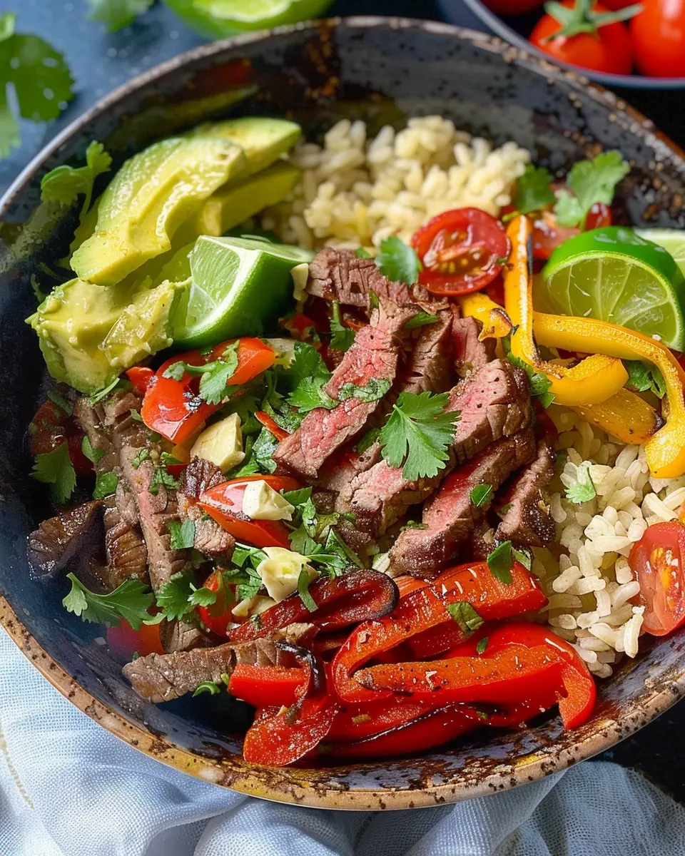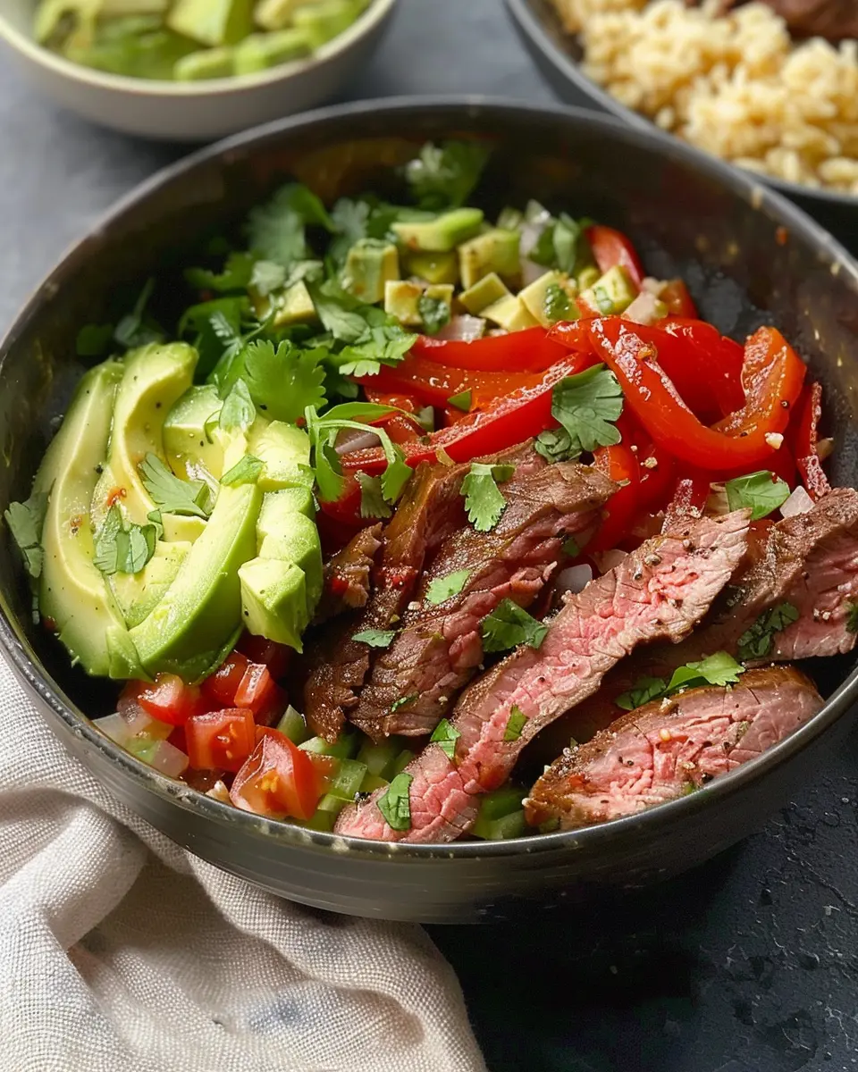 PrintHigh Protein Steak Fajita Bowl: Easy Recipe for Home Chefs