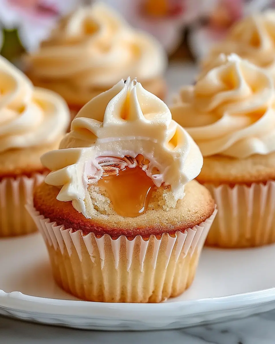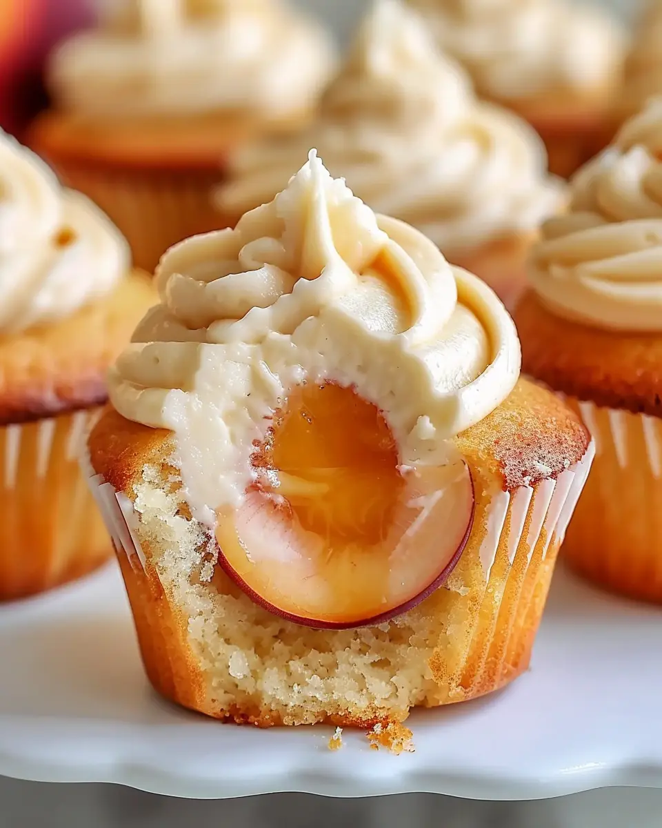 Serve on a Platter: Arrange your cupcakes on a beautiful cake stand surrounded by additional peach slices or edible flowers for a stunning centerpiece.