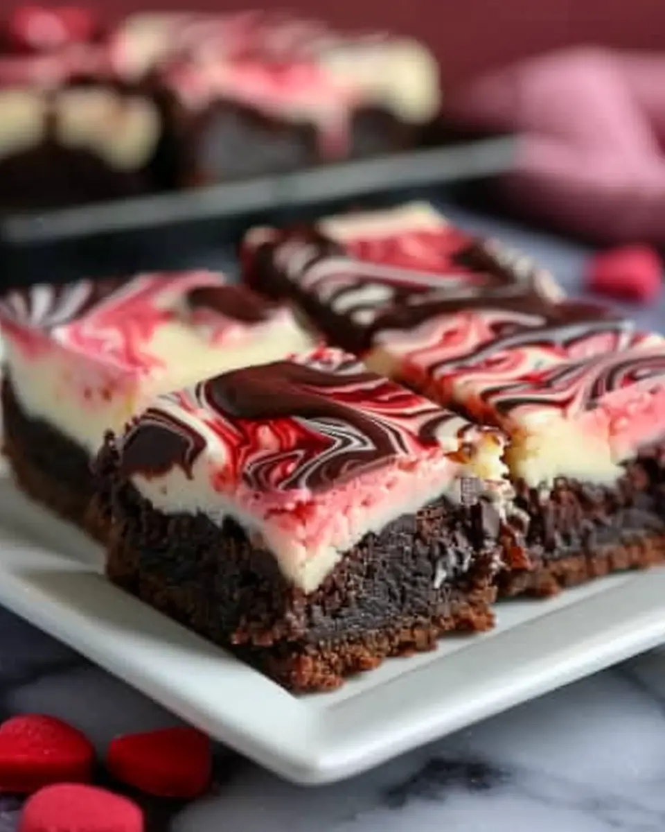 In just a few simple steps, you’ve created an “irresistible” dessert that speaks to the heart. Whether you’re sharing with a loved one or enjoying them solo, these cheesecake brownies will be a delightful addition to your Valentine’s festivities. Enjoy!