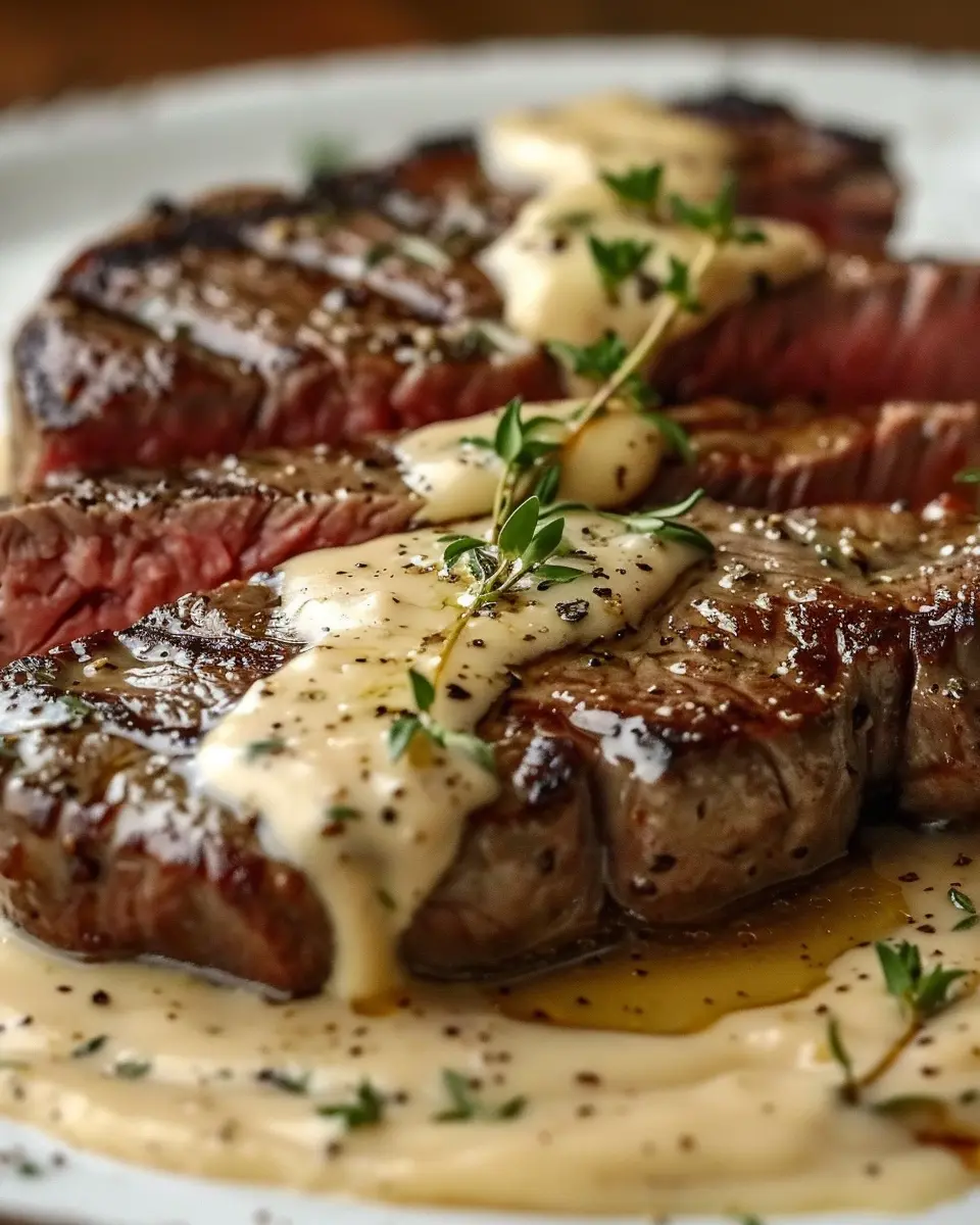 PrintJuicy Steak with Creamy Garlic Sauce: A Delicious Homemade Delight