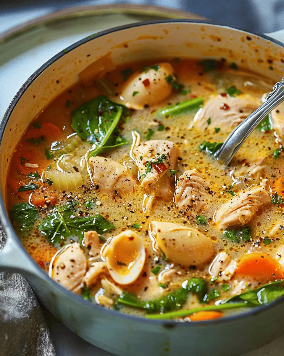 Towards the end of your simmering, stir in the fresh spinach and heavy cream. The cream will add a luxurious touch, while the spinach contributes a burst of color and nutrition. Cook until the spinach wilts, roughly 3–5 minutes. Taste and adjust the seasoning if necessary, adding more salt or pepper to your liking. Your Marry Me Chicken Soup is now complete!