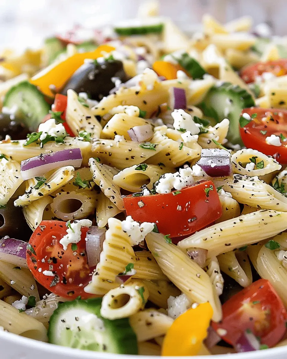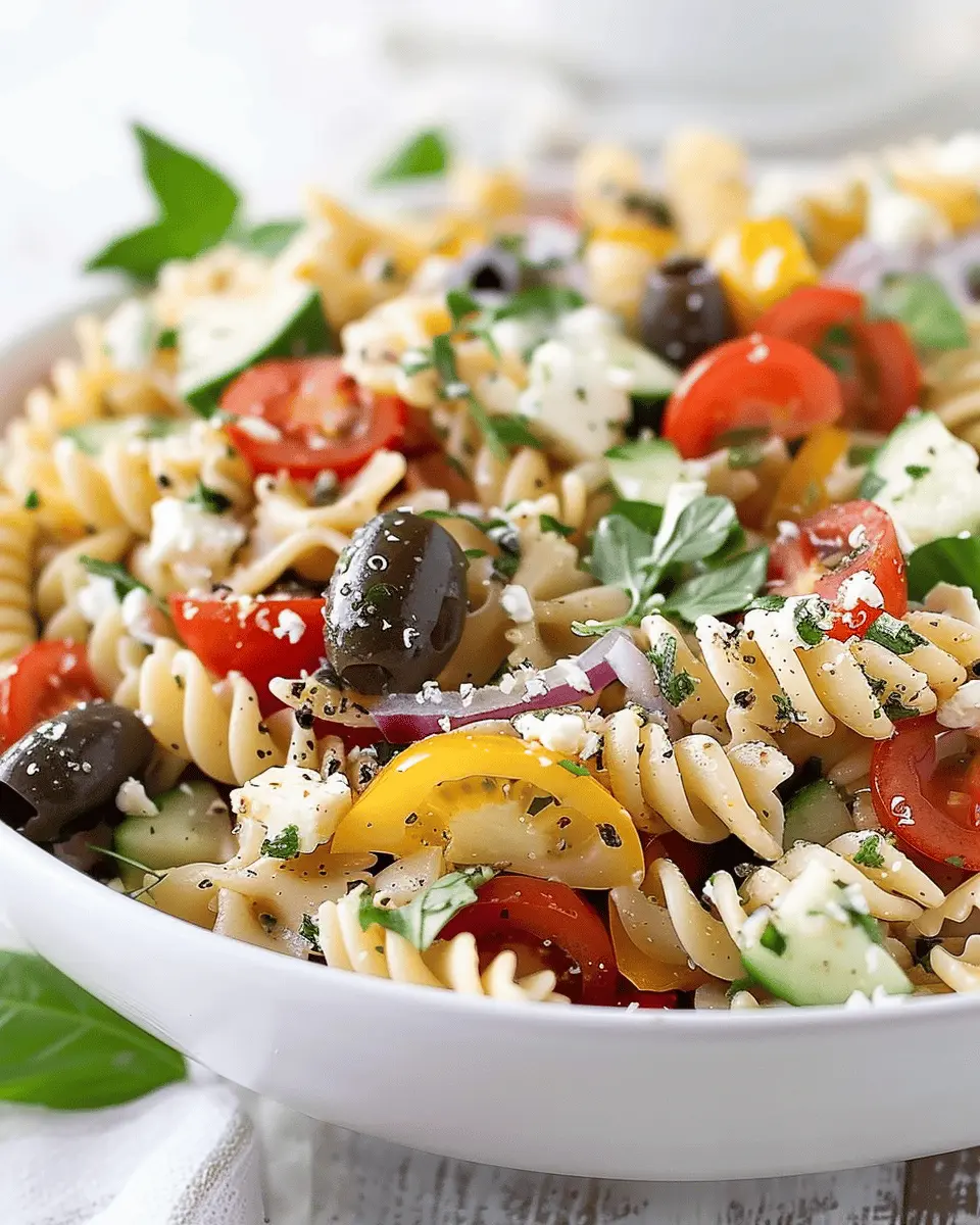 In conclusion, preparing a Mediterranean Pasta Salad is not just easy; it’s a vibrant way to enjoy fresh ingredients and flavors that transport your palate across the sea. Serve it as a side dish or a main, and you’ll be the star at your next gathering! Happy cooking!