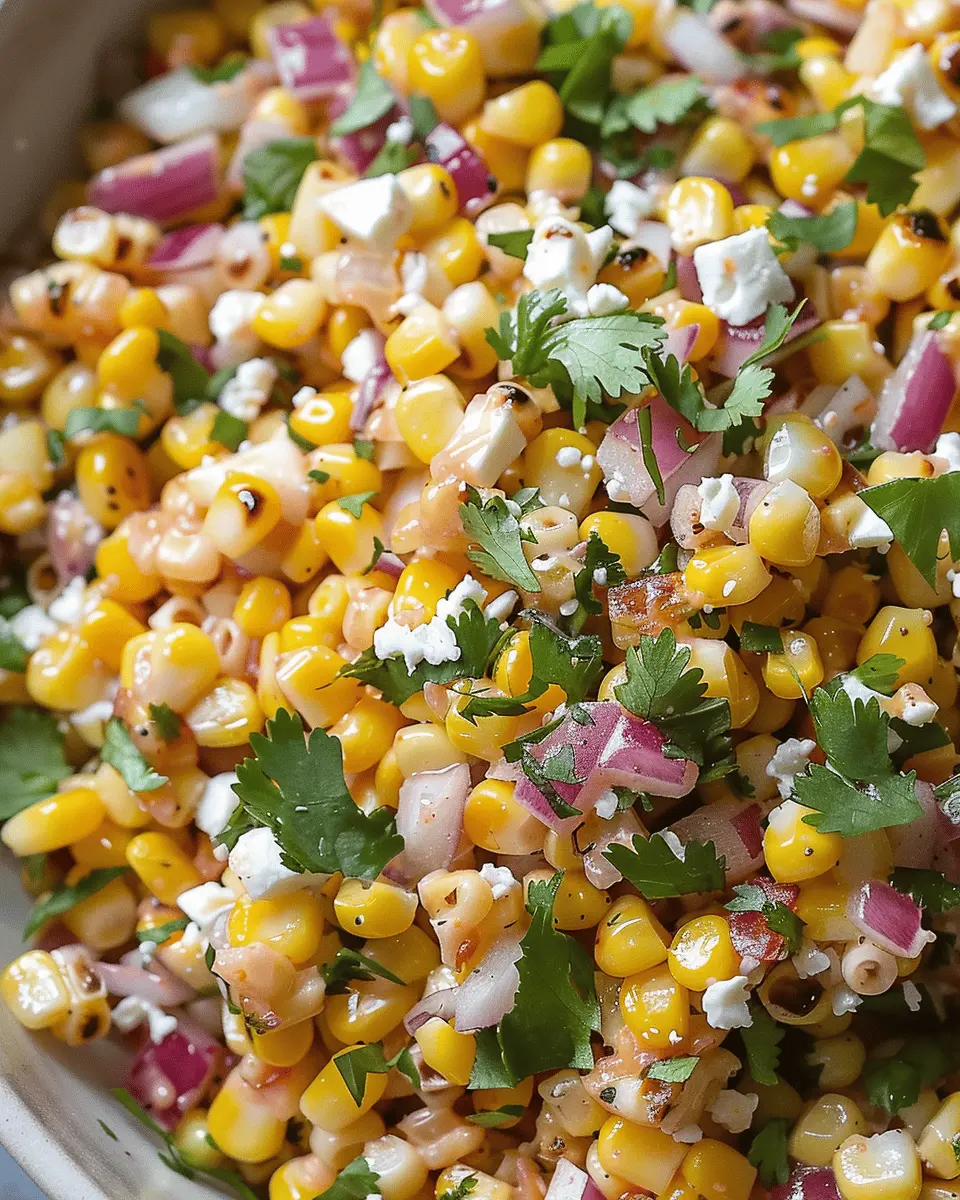 Making a vegan version of this delicious Mexican corn salad is quite easy! Simply omit any animal products, such as turkey bacon or chicken ham. Instead, consider adding more protein by including black beans or chickpeas. You can enhance the flavor with a squeeze of lime and an extra dose of spices. If you’re looking for dairy-free options for creaminess, avocado or a cashew-based dressing works wonderfully!