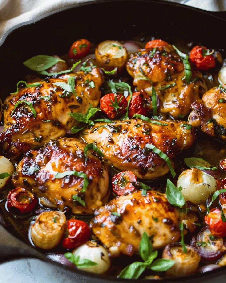 Enjoy a delicious One Pan Balsamic Chicken dish that combines tender chicken with a savory balsamic glaze, perfect for effortless weeknight dinners.