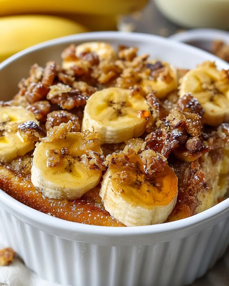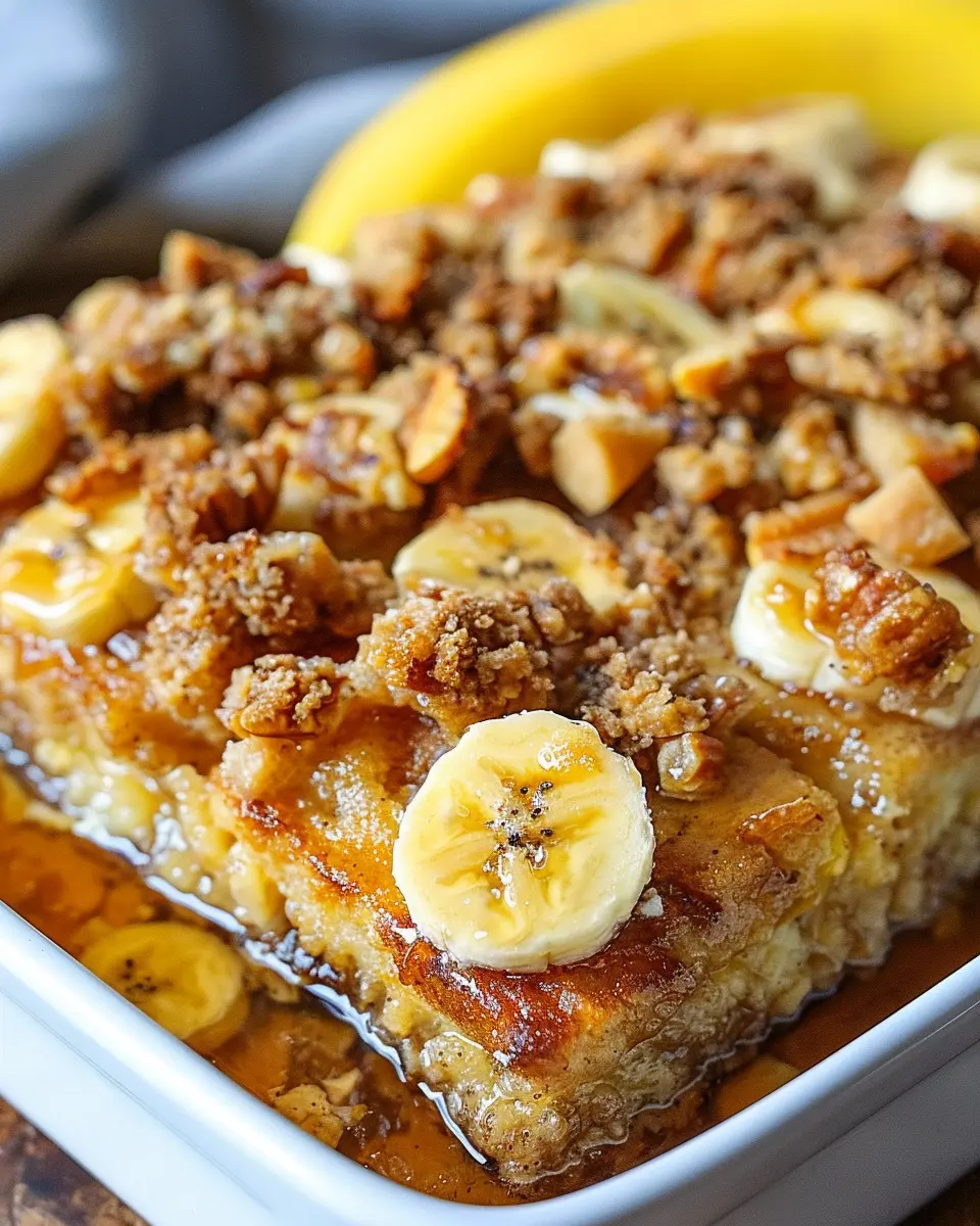 PrintOvernight Baked Banana French Toast Casserole: Indulgent & Easy Delight
