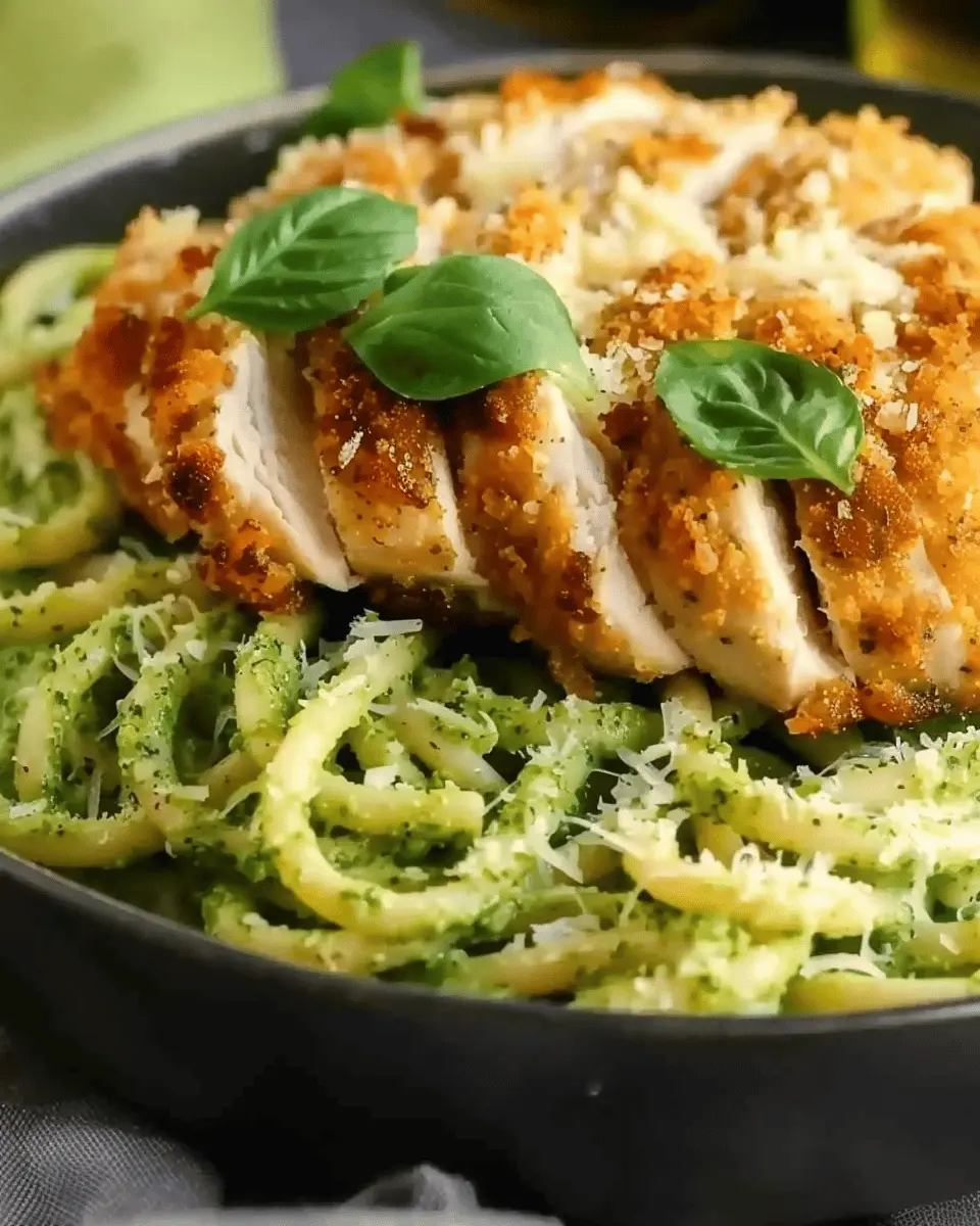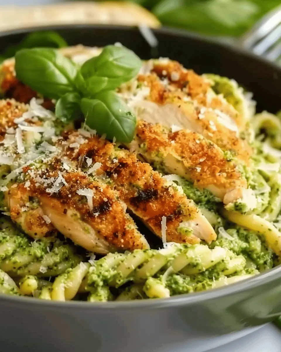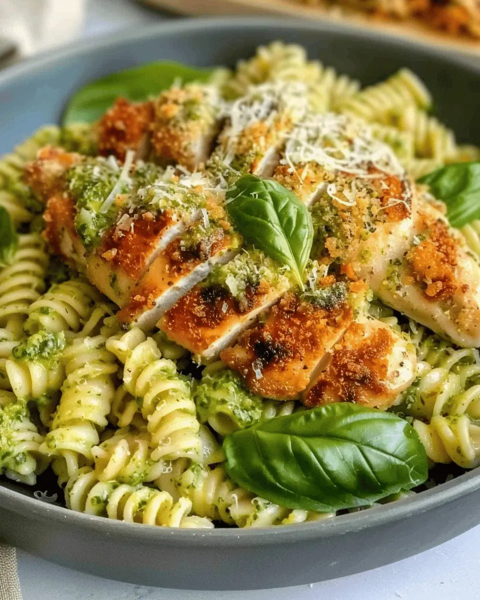 Now, let’s talk about the flavor profile of this mouthwatering dish: Pesto Pasta with Crispy Parmesan Chicken. Imagine the rich and aromatic notes of fresh basil, garlic, and pine nuts blending seamlessly into a perfectly cooked pasta. The addition of crispy Parmesan chicken brings a delightful crunch that contrasts beautifully with the creamy texture of the pesto. Each bite delivers a symphony of flavors—savory, nutty, and herbaceous—making it an unforgettable dining experience. Featured ingredients like pesto not only elevate the taste but also pack in a nutritious punch, loaded with healthy fats and vitamins.