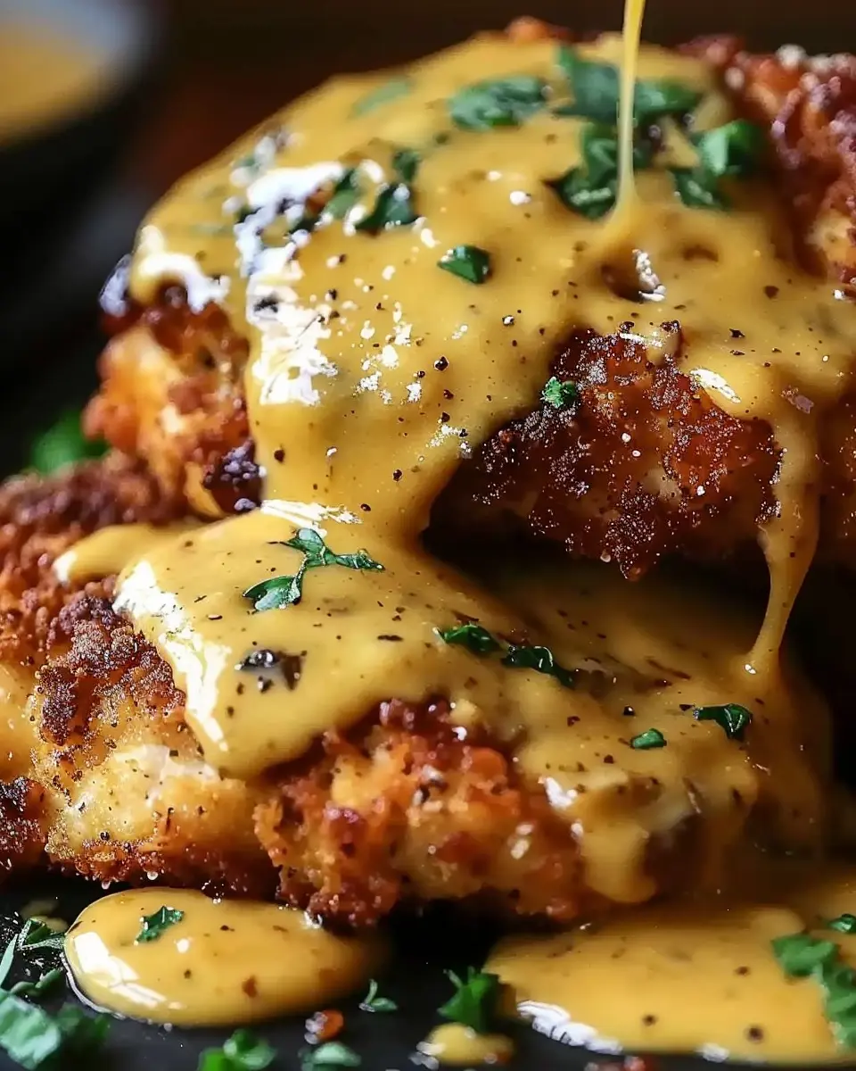 Once the chicken is golden brown and the sauce is creamy, it’s time to plate. Place the crunchy pretzel chicken on a serving dish, drizzled generously with your mustard-cheddar sauce. The aroma will be absolutely irresistible!