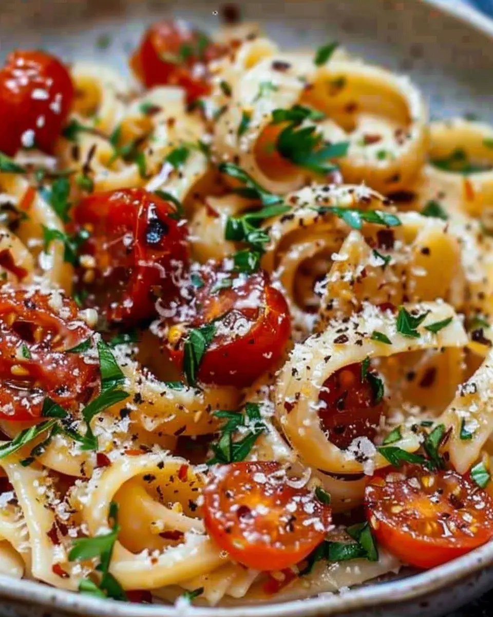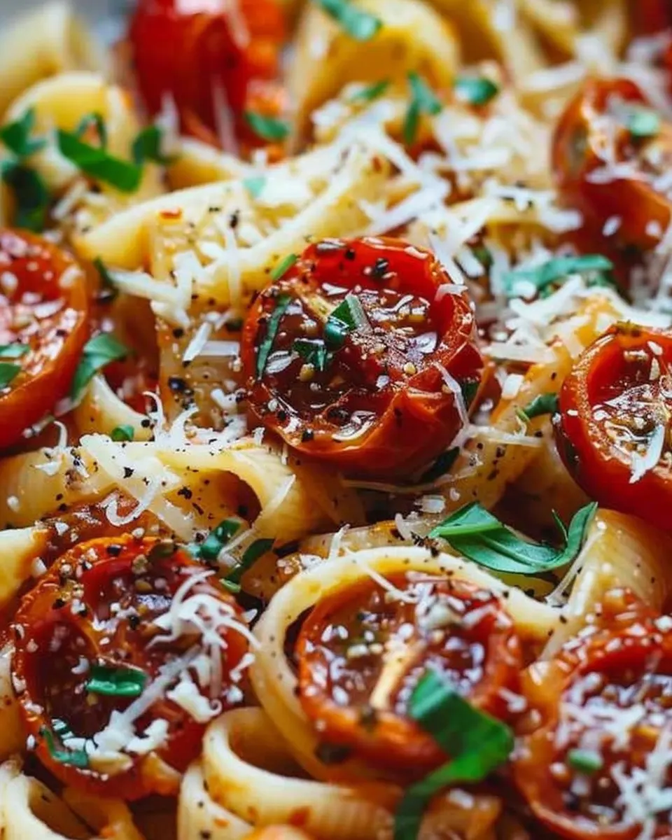 Discover the delightful taste of roasted tomatoes and garlic in this easy pasta recipe, perfect for any occasion.