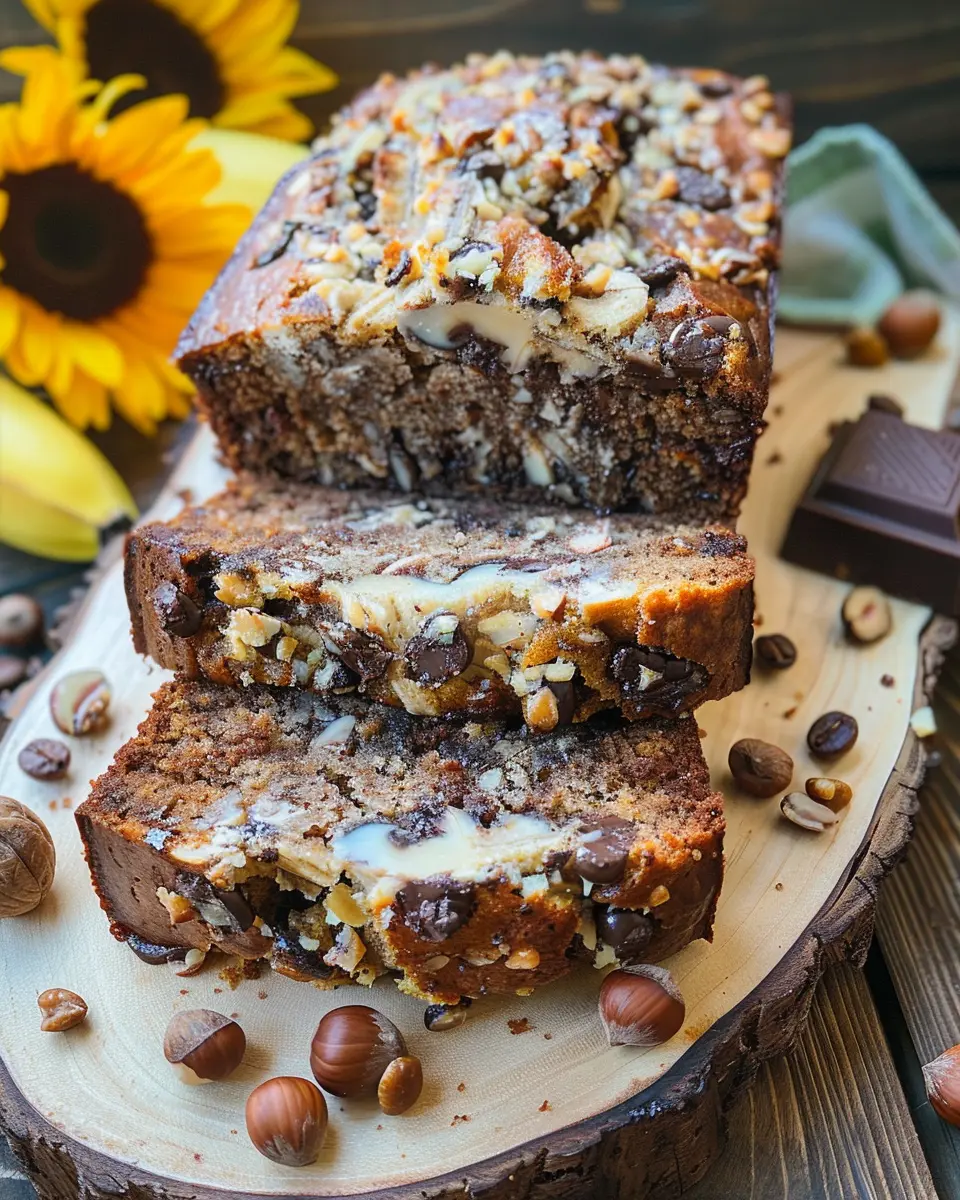 Indulge in the rich flavors of Rustic Tuscan Banana Bread infused with chocolate, crunchy hazelnuts, and a hint of espresso.