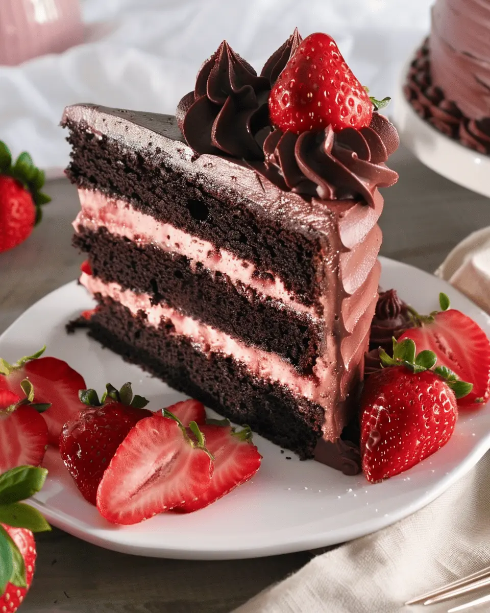 The cake includes approximately 25 grams of sugar per serving. It’s definitely on the sweeter side, thanks to the rich chocolate and the natural sweetness of strawberries. If you’re watching your sugar levels, consider enjoying a smaller slice or pairing it with some fresh fruit for a balanced treat.
