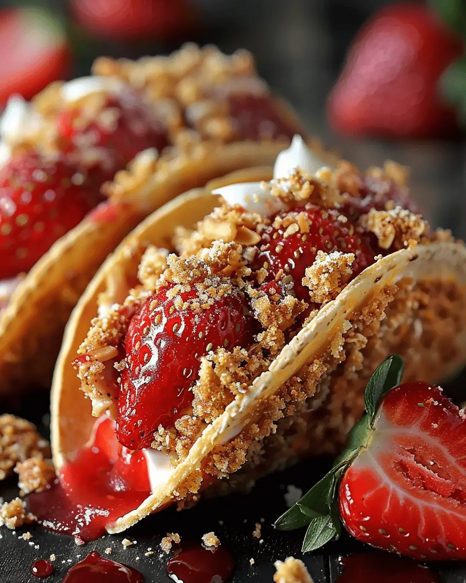 Absolutely! Strawberry crunch cheesecake tacos can be prepped in advance, making them perfect for parties or a busy weeknight. You can prepare the cheesecake filling and the taco shells a day or two before serving. Just keep the filling refrigerated and assemble the tacos right before enjoying for the freshest taste. If you want, you can even store the crunch topping separately to maintain that delightful texture.