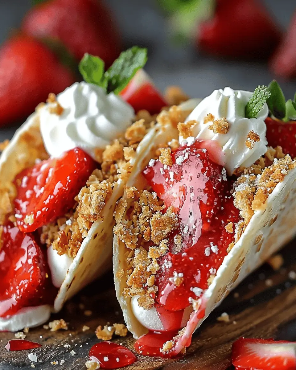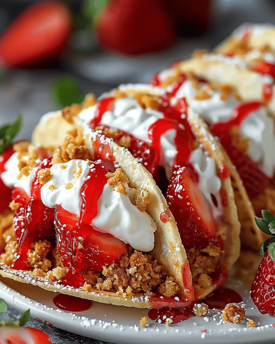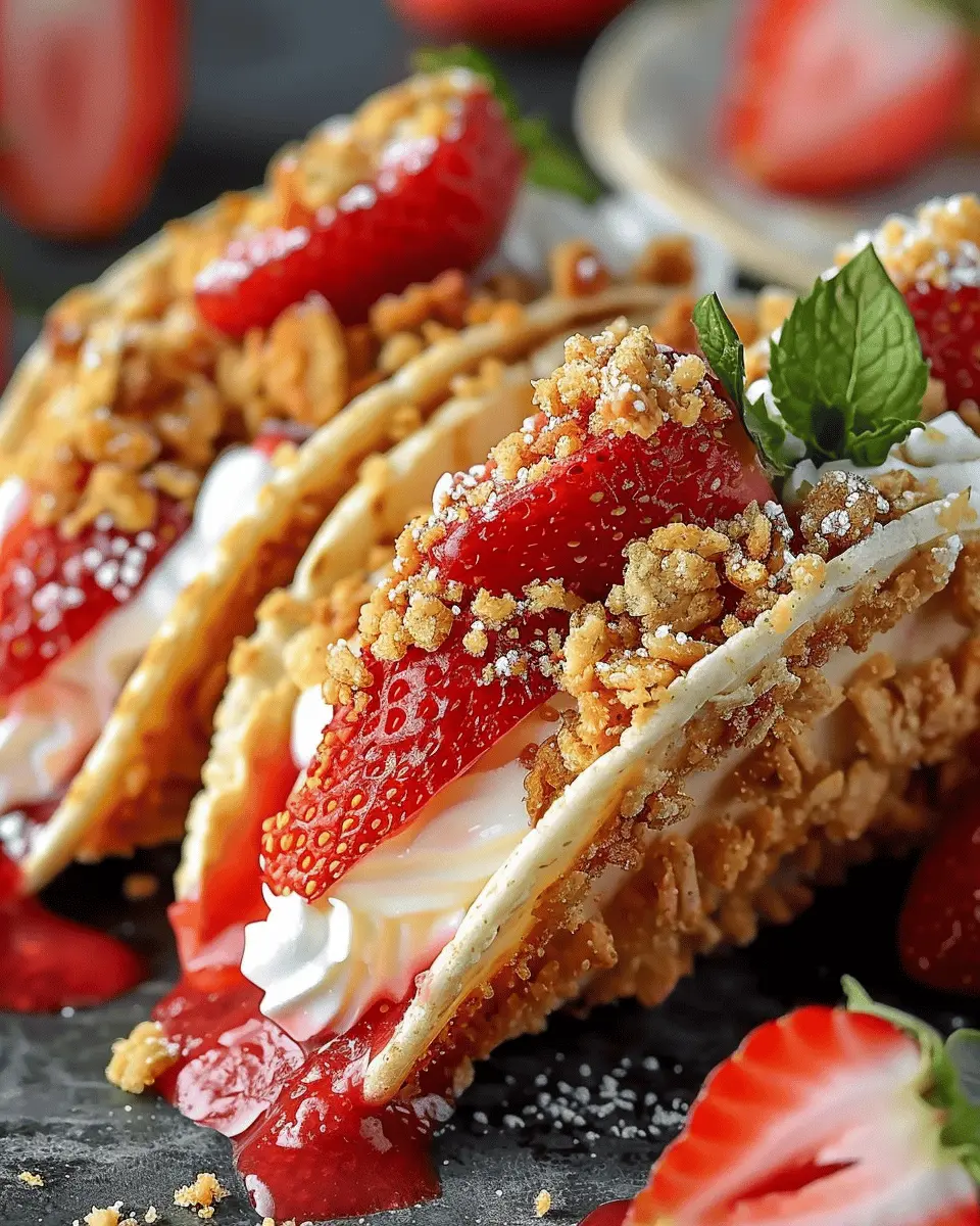 Imagine biting into a crispy taco shell, loaded with creamy cheesecake filling, and topped with a crunchy strawberry topping. It’s a flavor explosion that’s both refreshing and indulgent. Plus, they’re a fantastic way to impress friends at your next gathering or have a cozy night in. You can whip them up just in time for special occasions or simply to treat yourself after a long week.