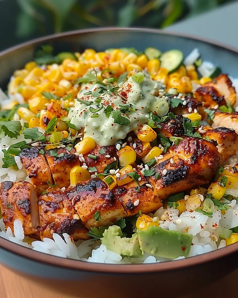 Spicy Street Corn Chicken Rice Bowl
