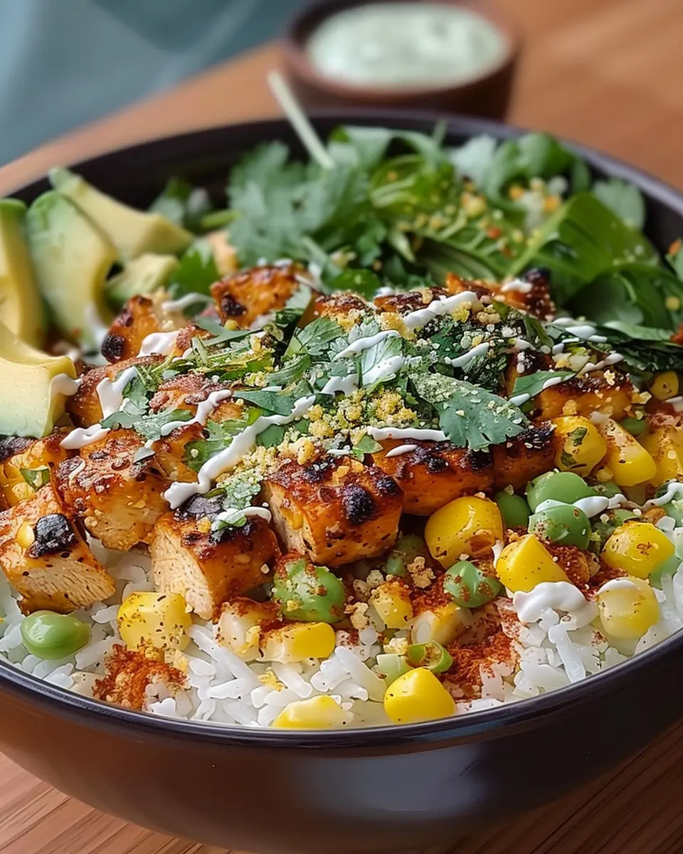 A flavorful and easy recipe for a delicious street corn chicken rice bowl, perfect for weeknight dinners.