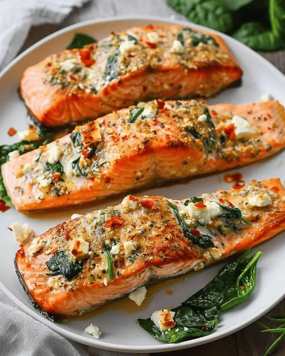 Absolutely! Using frozen salmon is a convenient option, especially if you’re busy. Just be sure to thaw it properly—either overnight in the fridge or by running it under cold water for about an hour. Substituting frozen salmon for fresh may slightly change the texture, but it’s still delicious when stuffed with that savory spinach and feta mix.