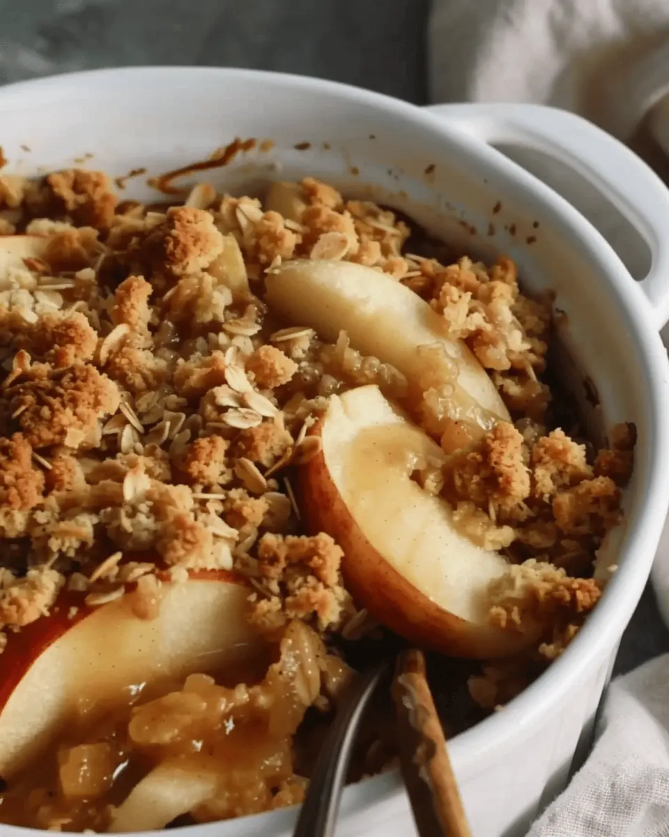 Pop the dish into the preheated oven and bake for about 35-40 minutes, or until the apples are tender and the topping is golden brown. Can you smell that aroma wafting through your kitchen? It’s pure bliss!