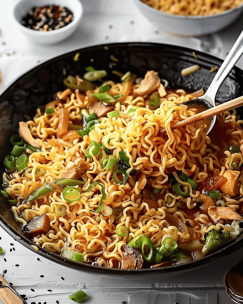 No chicken on hand? No problem! You can easily adapt this recipe by using other proteins. Try tofu for a plant-based option, or perhaps opt for shrimp or beef if you want to mix things up. Even a combination of vegetables like mushrooms, bok choy, and bell peppers can create a hearty, delicious bowl of ramen. Feel free to get creative and use whatever protein or vegetables you have at home!